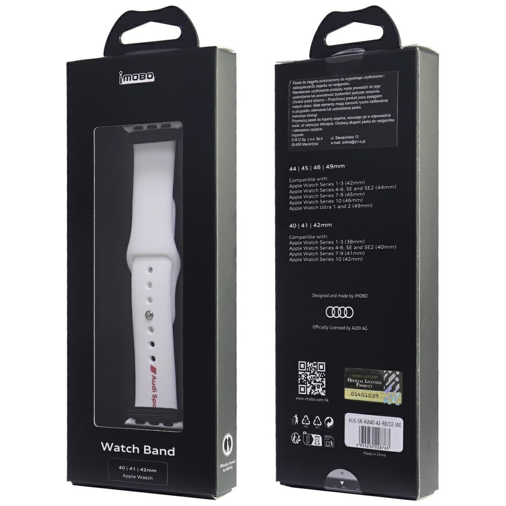 Audi Strap Sport Red Logo Silicone Watch Strap Apple Watch SE/11/10/9/8/7/6/5/4/3 (42/41/40/38mm)White