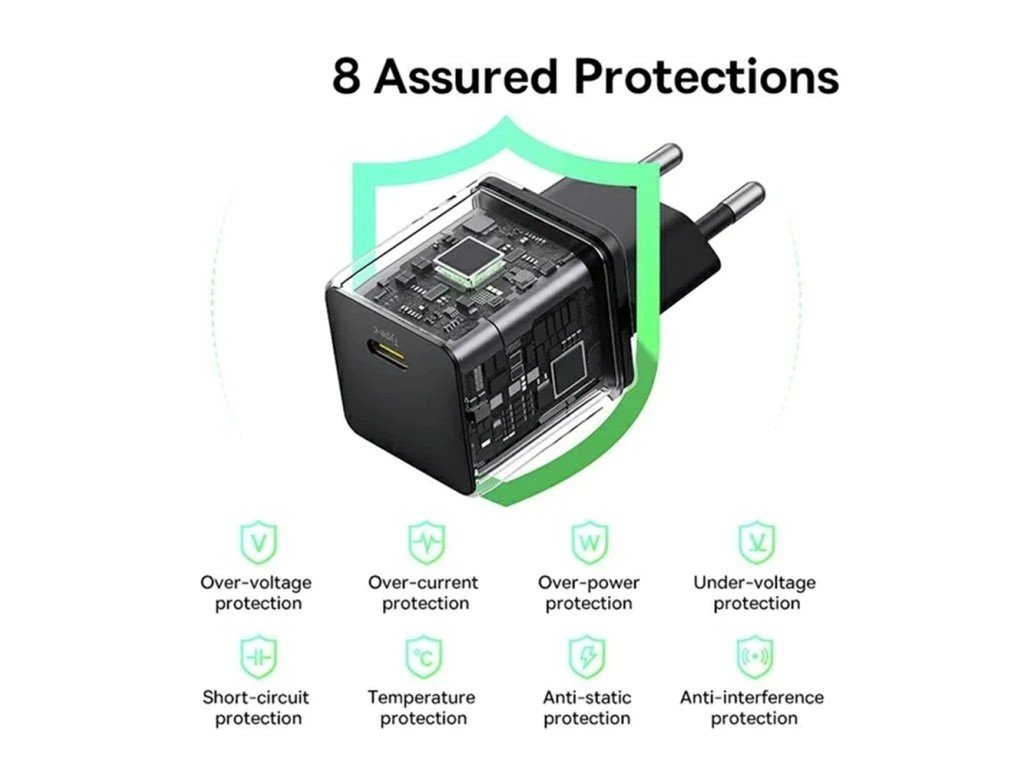 Nabíječka je vybavena až 8 druhy ochran, včetně ochrany proti přepětí, zkratu nebo přehřátí.