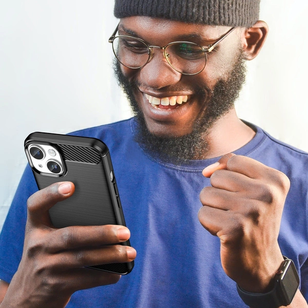 Carbon Case je odolné pouzdro s elegantními úpravami napodobujícími kartáčovaný kov. Vyrobene z kvalitních materiálů ( TPU ), obal, který dokonale chrání telefon před pády, škrábanci nebo špínou. Absorbuje nárazy, a speciální struktura uvnitř doplňku pomáhá rozptýlit sílu nárazu. Navíc, zvýšené okraje kolem obrazovky a objektivu kamery a velké, citlivé tlačítka.