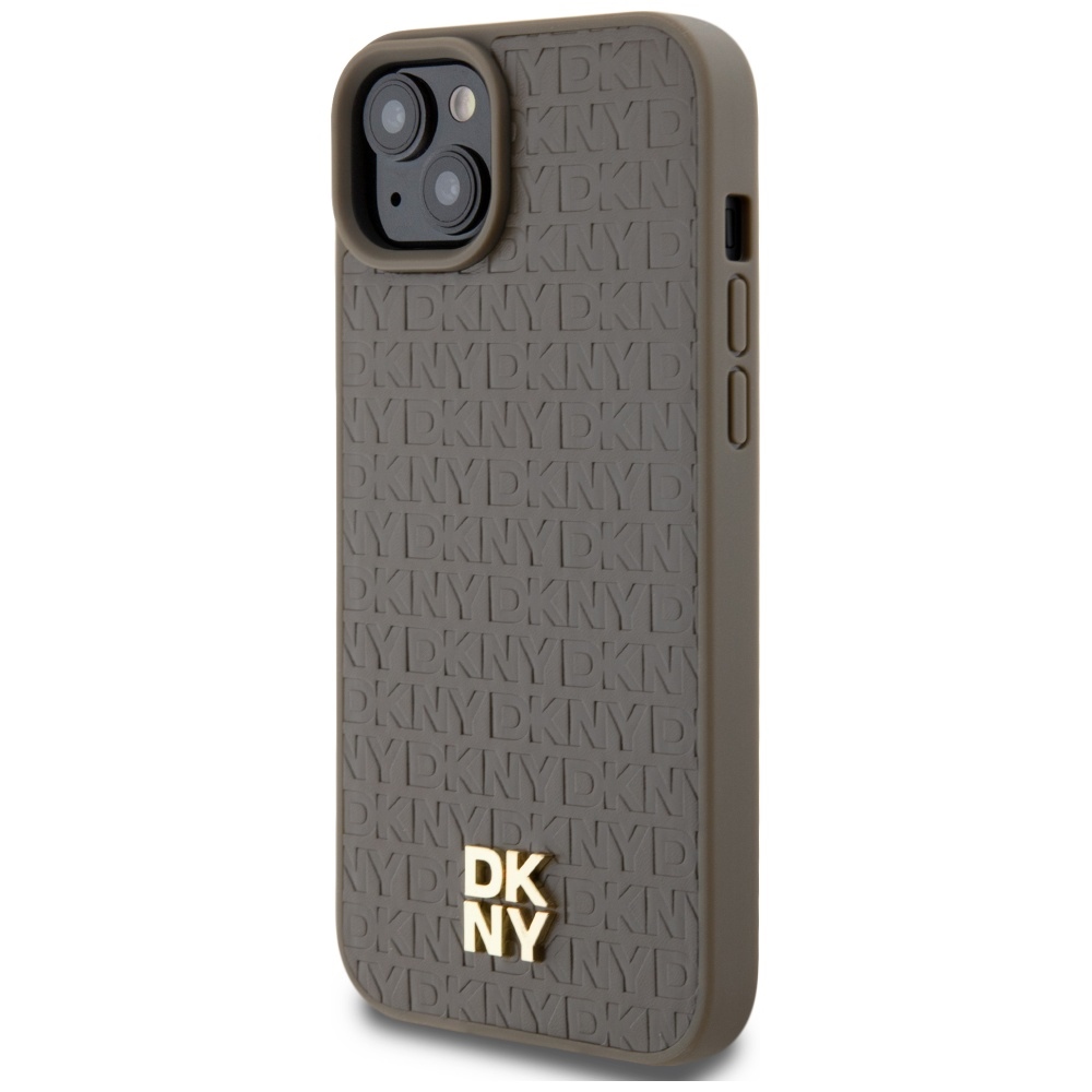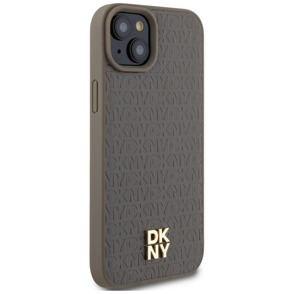 DKNY DKHMP15SPSHRPSW Brown Hardcase Leather Pattern Metal Logo MagSafe Kryt iPhone 13/14/15