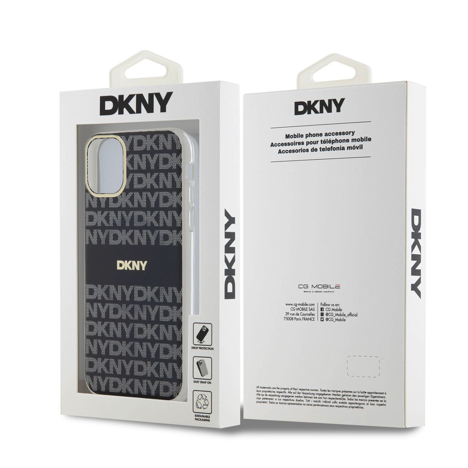 DKNY PC/TPU Repeat Pattern Tonal Stripe MagSafe Black Kryt iPhone 11 kombinuje čistý design a jistotu ochrany pro iPhone 11. Přesné tvarování zachovává tenký profil telefonu a chrání jej před pády a poškrábáním.