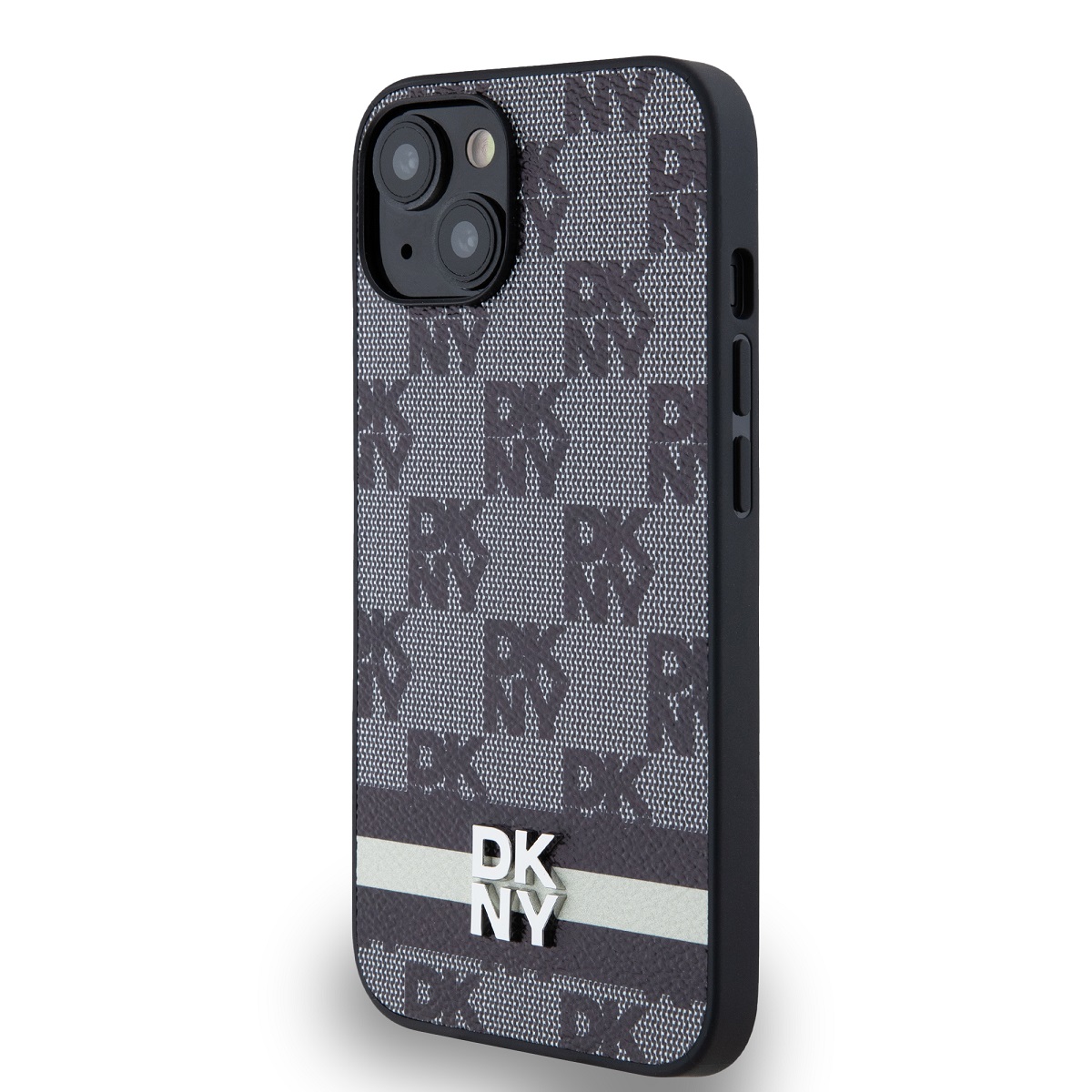 DKNY PU Leather Checkered Pattern and Stripe Black Kryt iPhone 13 kombinuje čistý design a jistotu ochrany pro iPhone 13. Přesné tvarování zachovává tenký profil telefonu a chrání jej před pády a poškrábáním.