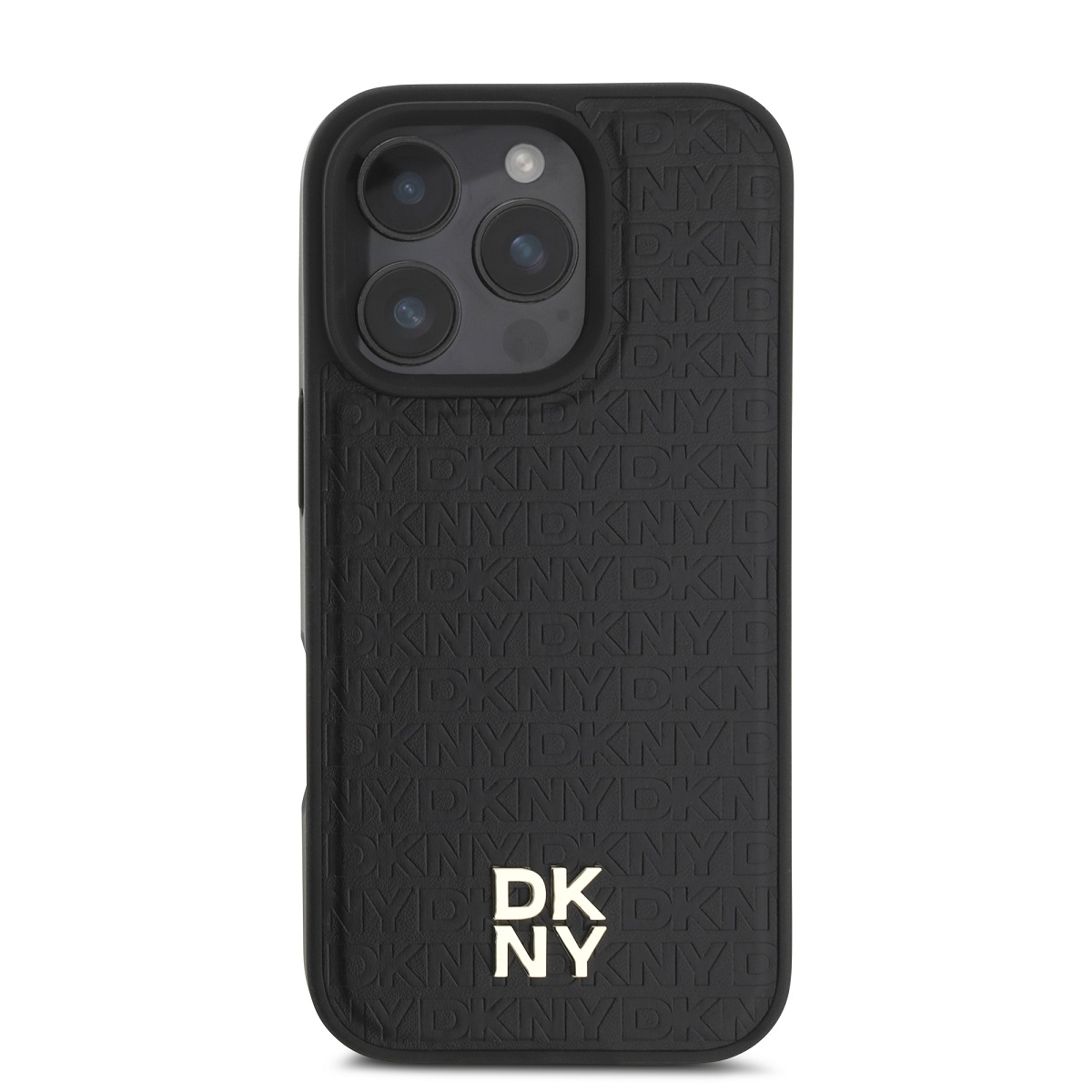 DKNY PU Leather Repeat Pattern Stack Logo MagSafe Black Kryt iPhone 16 Pro Max