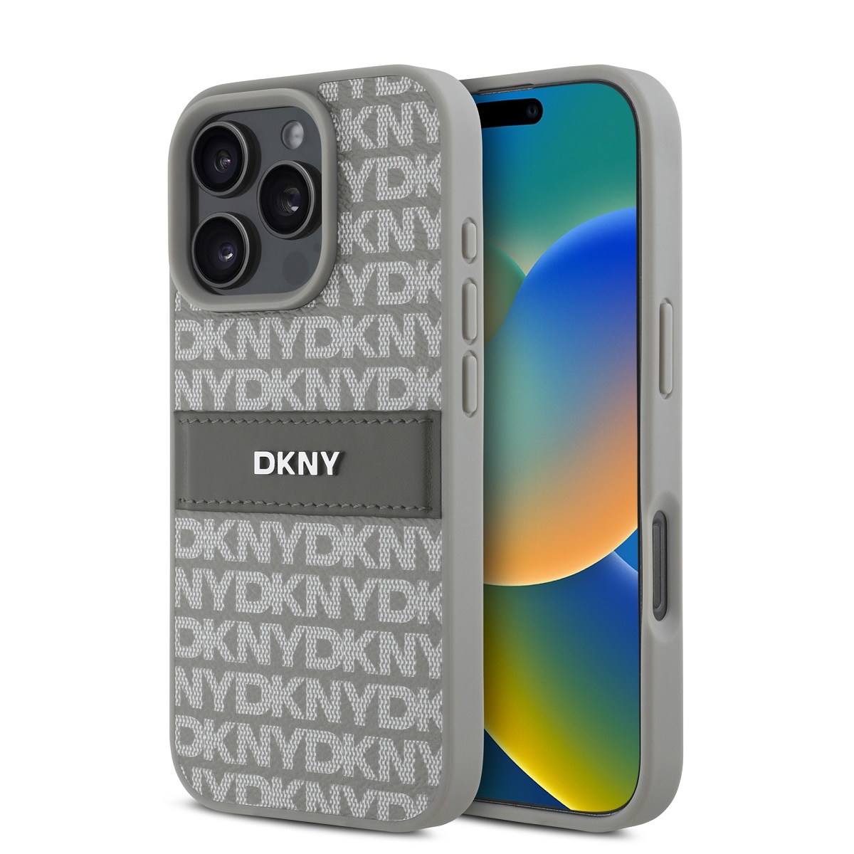 DKNY PU Leather Repeat Pattern Tonal Stripe Beige Kryt iPhone 16 Pro Max