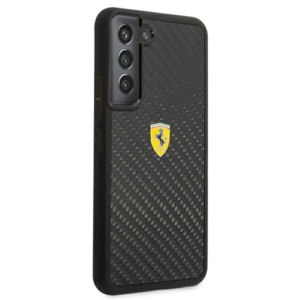 Ferrari FEHCS22MFCAK Black HardCase On Track Real Carbon Kryt Samsung Galaxy S22 Plus kombinuje čistý design a jistotu ochrany pro Samsung Galaxy S22 Plus. Přesné tvarování zachovává tenký profil telefonu a chrání jej před pády a poškrábáním.