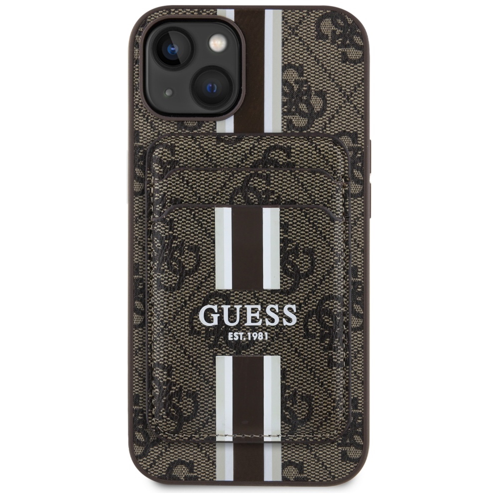 Guess 4G Stripes with Wallet MagSafe Brown Kryt iPhone 15