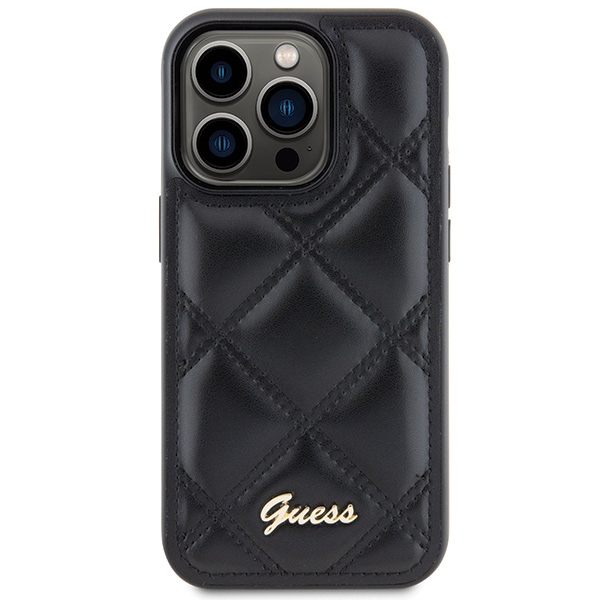Guess GUHCP15XPSQSQSK Black Hardcase Quilted Metal Logo Kryt iPhone 15 Pro Max
