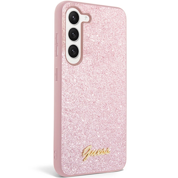 Guess GUHCS23MHGGSHP Pink Glitter Script Kryt Samsung S23 Plus