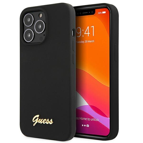 Guess GUHMP13LLSLMGBK Black Silicone Script Gold Logo Kryt iPhone 13 Pro