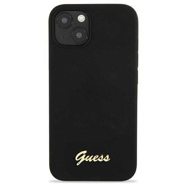 Guess GUHMP13MLSLMGBK Black Silicone Script Gold Logo Kryt iPhone 13