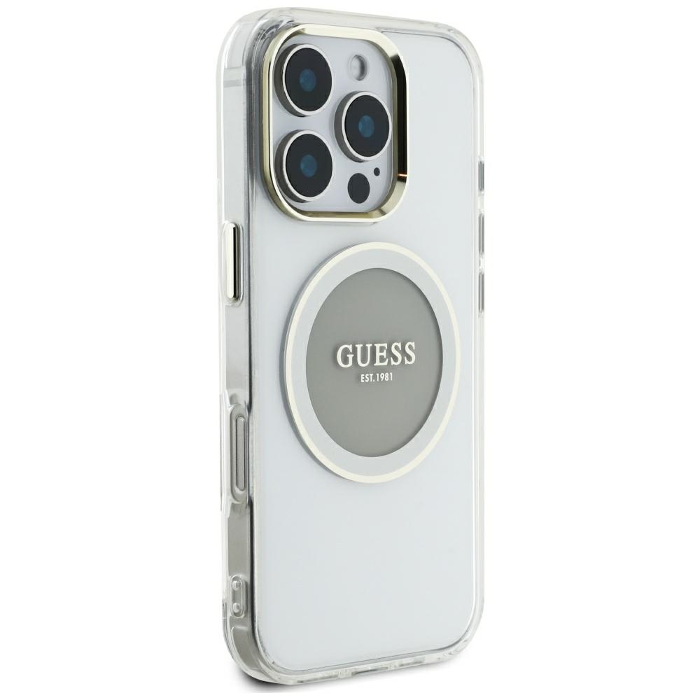 Guess IML Metal Colored Circle Classic Logo MagSafe Grey Kryt iPhone 16 Pro Max
