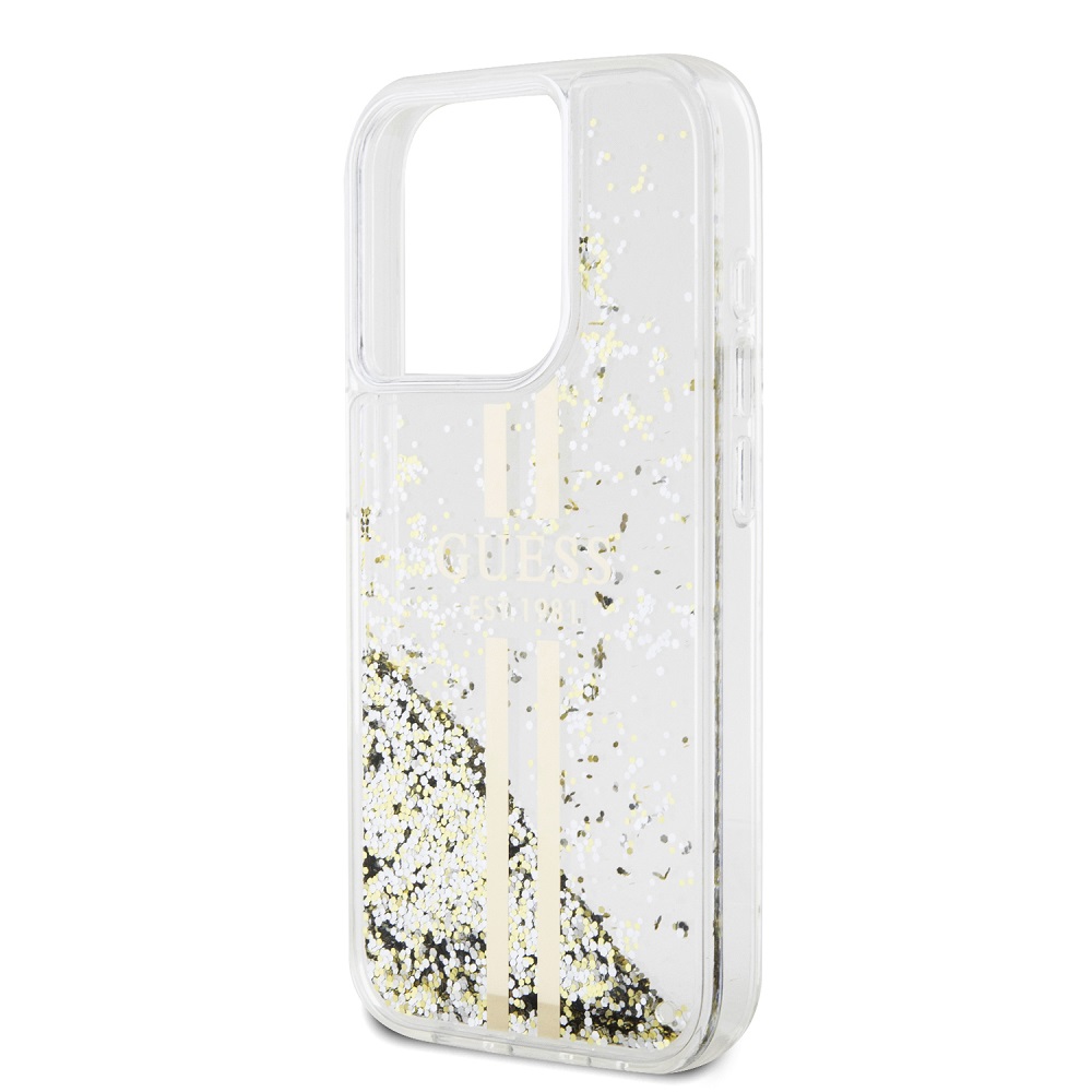 Guess PC/TPU Liquid Glitter Gold Stripe Transparent Kryt iPhone 15 Pro Max