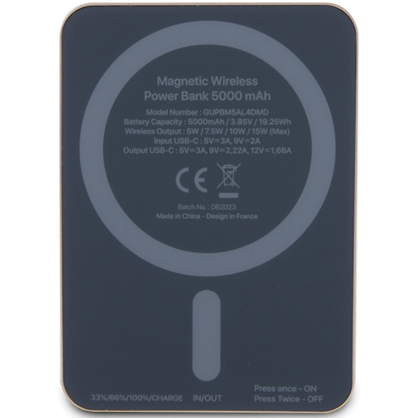 Guess Powerbank 15W GUPBM5AL4DMD 5000 mAh Gold MagSafe 4G Strassed Metal Logo je kompaktní a spolehlivá powerbanka, která dodá energii přesně ve chvíli, kdy ji potřebujete.