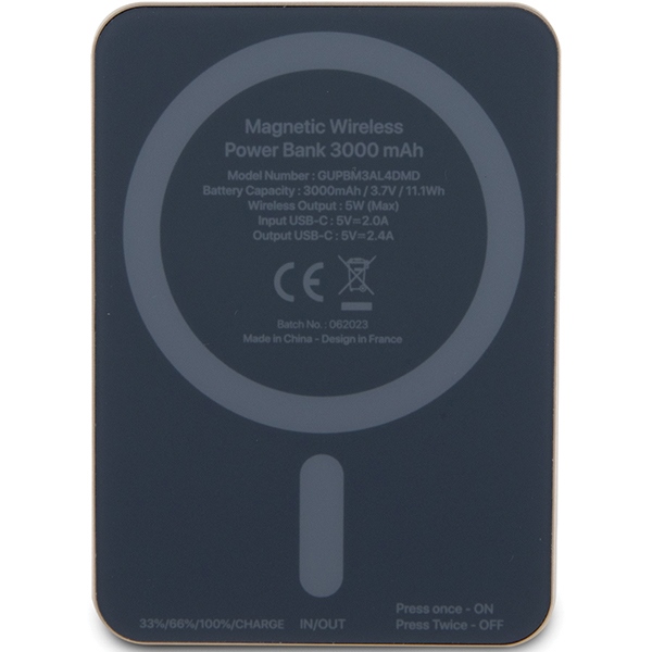Guess Powerbank 5W GUPBM3AL4DMD 3000 mAh Gold MagSafe 4G Strassed Metal Logo je kompaktní a spolehlivá powerbanka, která dodá energii přesně ve chvíli, kdy ji potřebujete.
