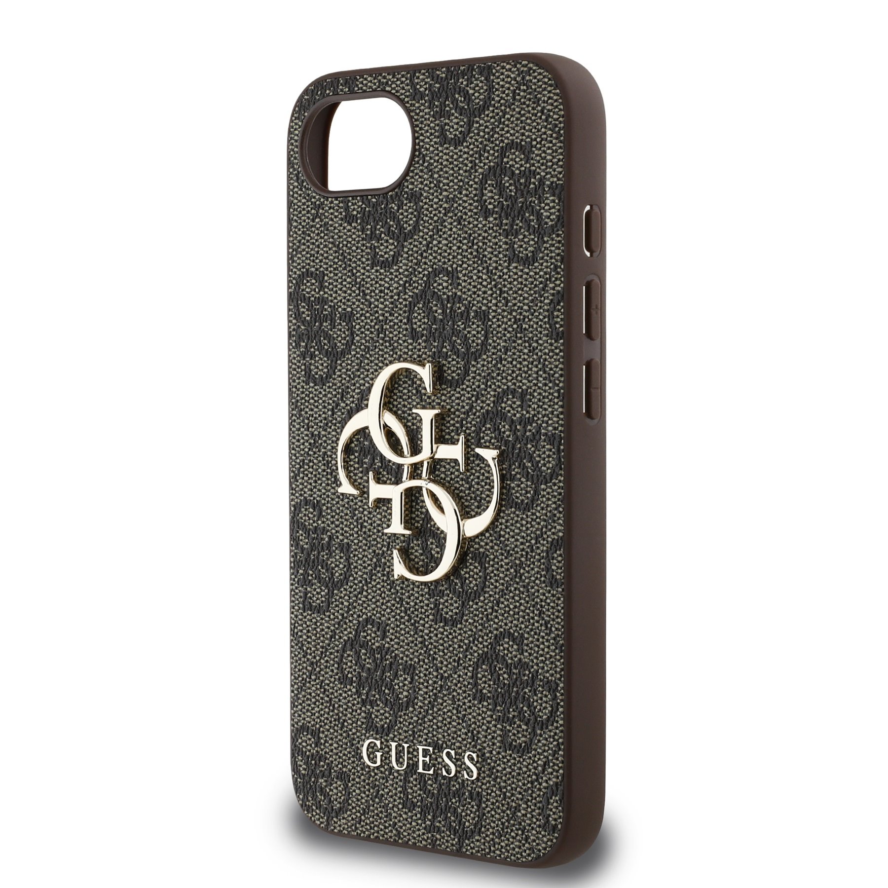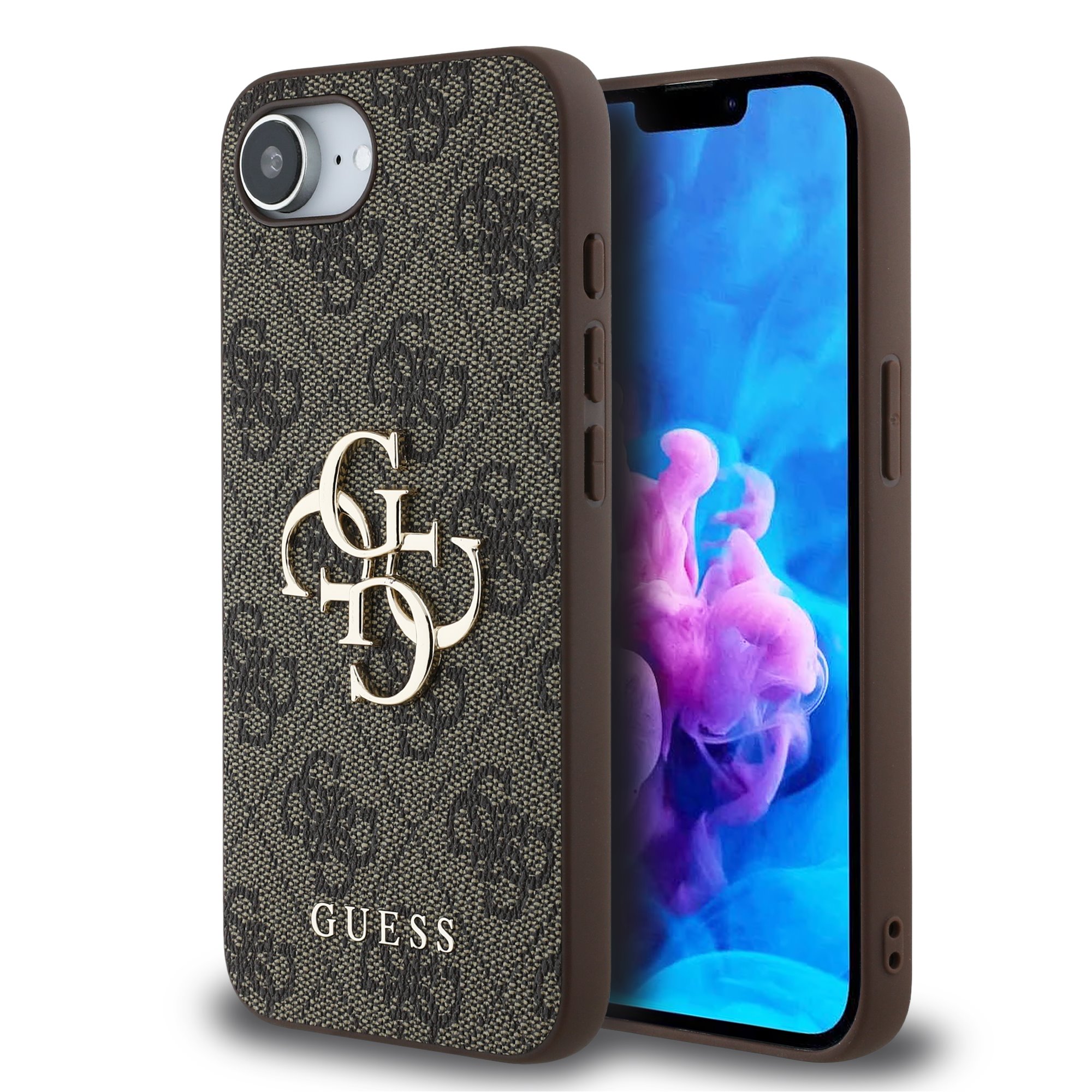 Prémiový zadní kryt Guess PU 4G Metal Logo se vyznačuje elegantním, charakteristickým 4G vzorem, doplněným o logo GUESS.