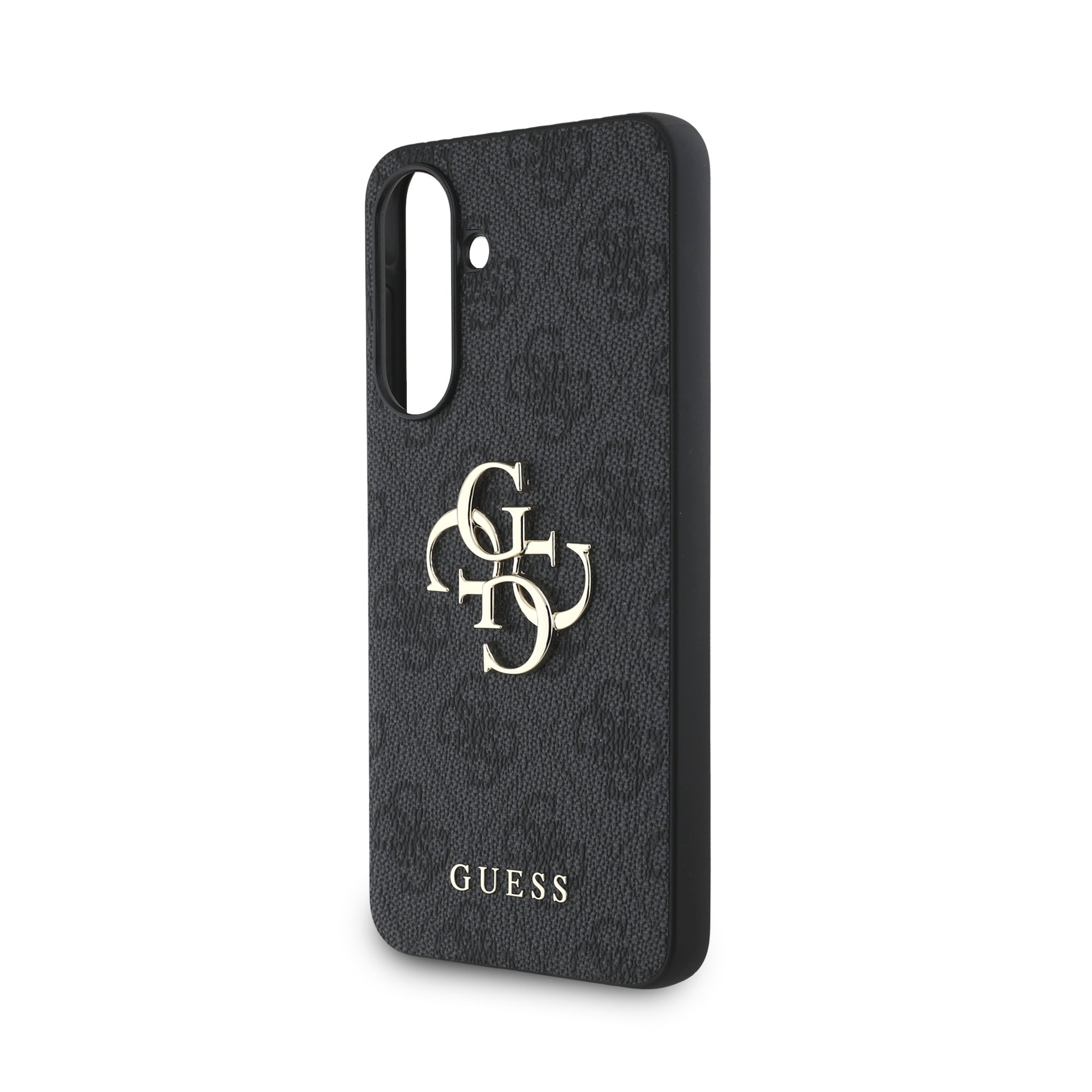 Prémiový zadní kryt Guess PU 4G Metal Logo se vyznačuje elegantním, charakteristickým 4G vzorem, doplněným o logo GUESS.