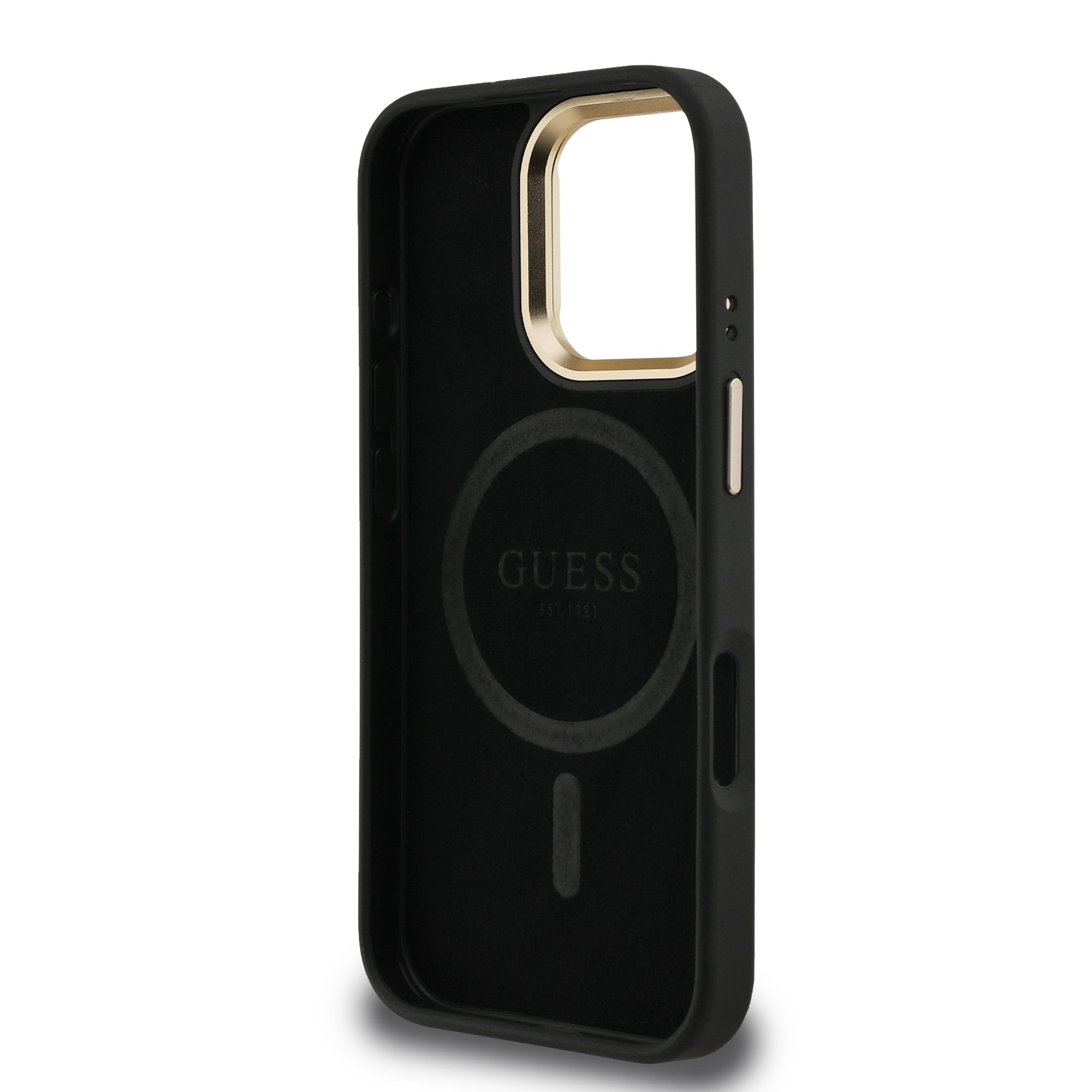 – Kovové trojúhelníkové logo Guess na zadní straně.