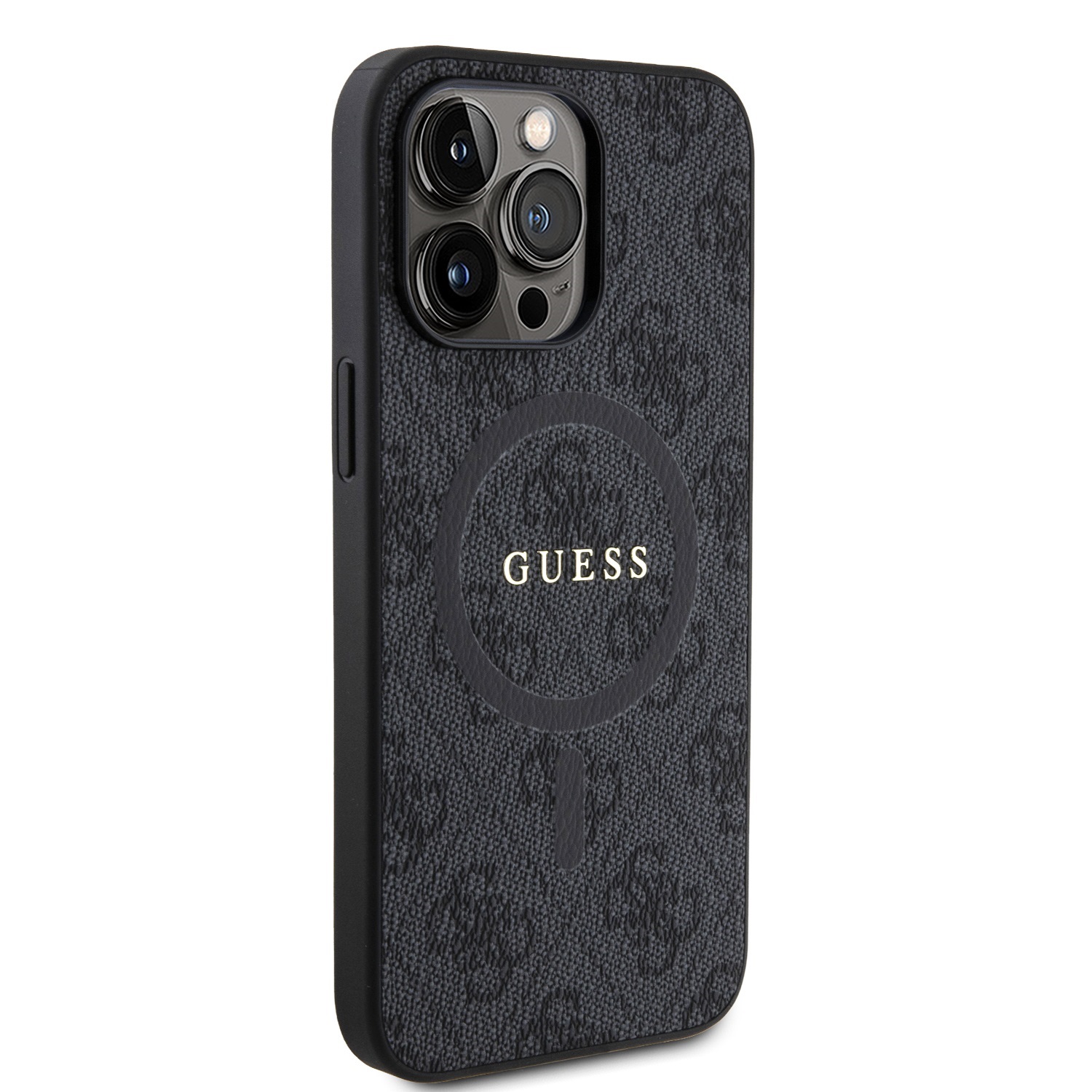 Guess PU Leather 4G Colored Ring MagSafe Black Kryt iPhone 15 Pro Max