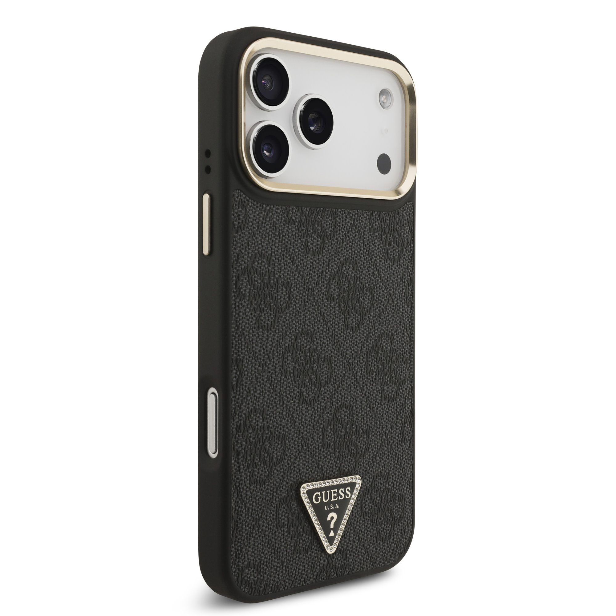 Guess PU Leather 4G Strass Triangle Logo Gold Frame zadní kryt je dokonalý doplněk pro váš telefon i váš outfit, který kombinuje funkčnost a styl v jednom.