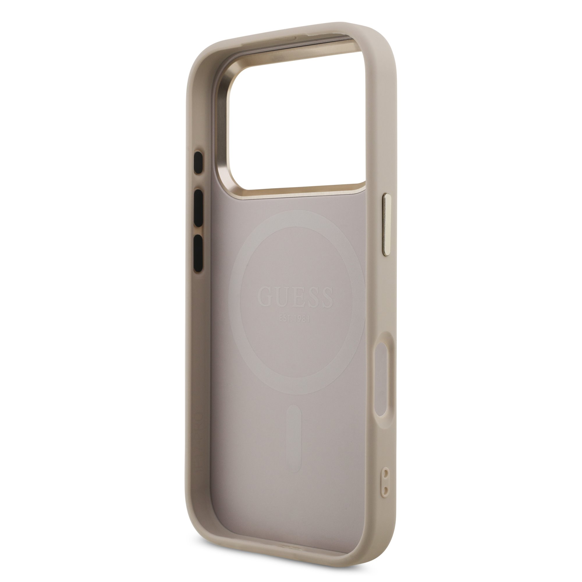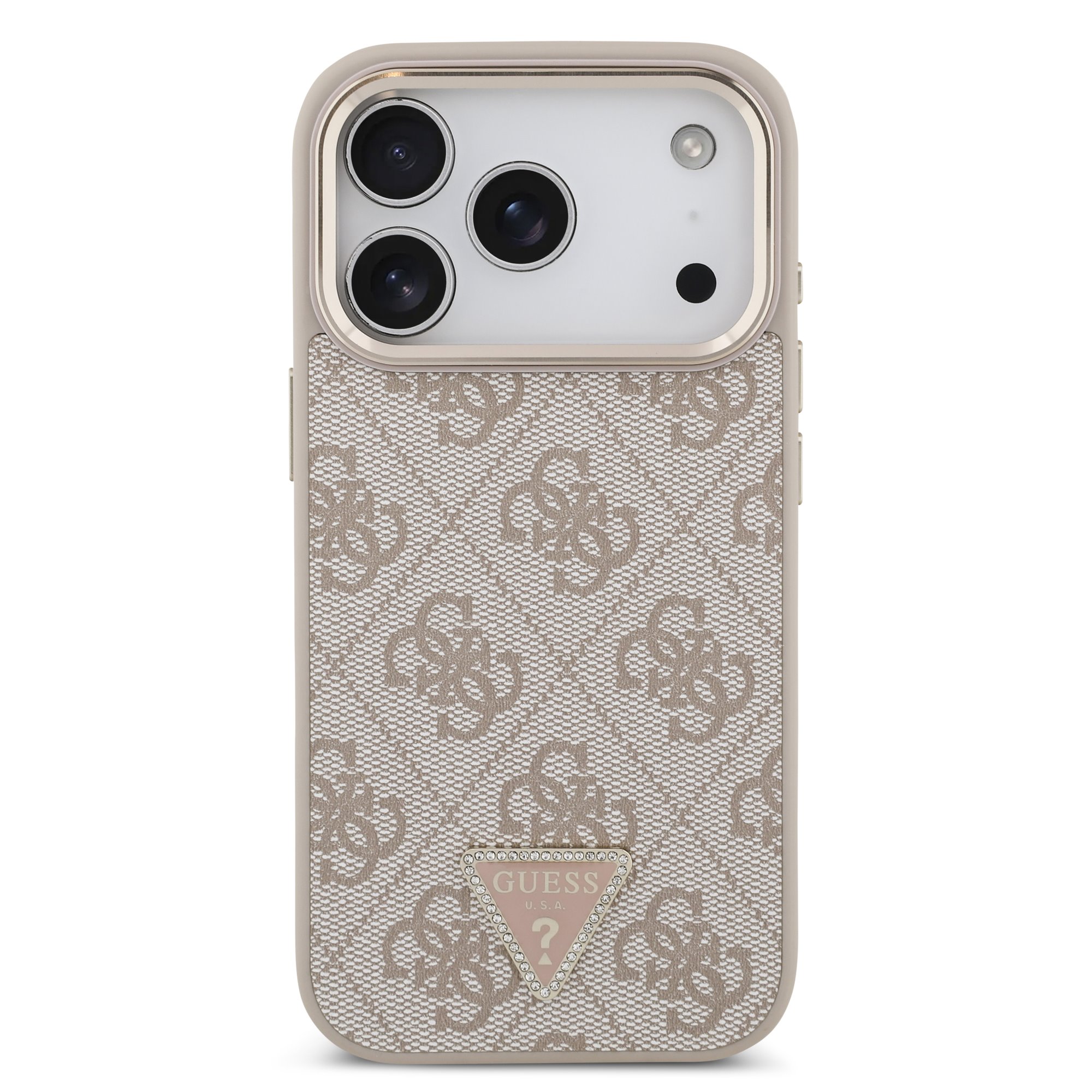 Guess PU Leather 4G Strass Triangle Logo Gold Frame zadní kryt je dokonalý doplněk pro váš telefon i váš outfit, který kombinuje funkčnost a styl v jednom.