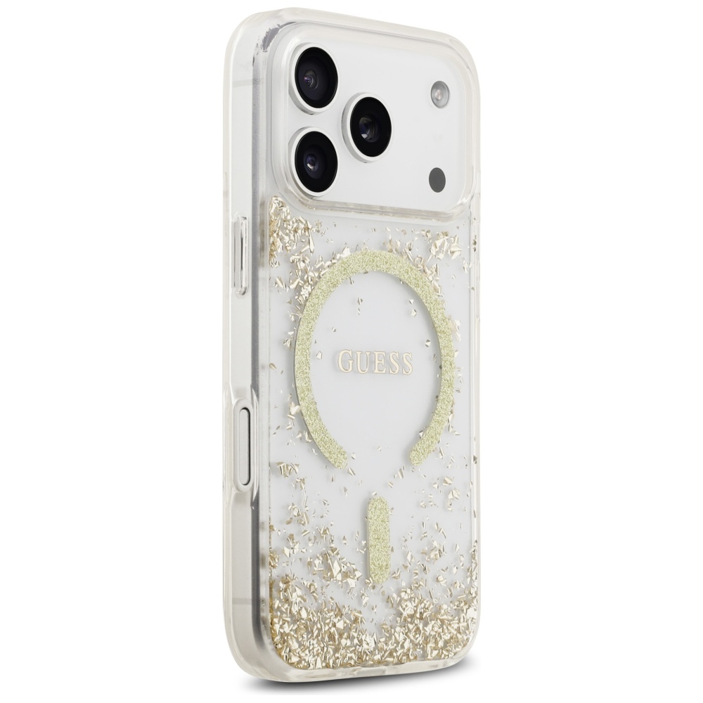 Guess Resin Bottom Glitter MagSafe Gold Kryt iPhone 17 Pro