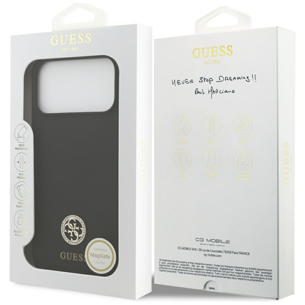 Guess Silicone Logo Strass 4G MagSafe Black Kryt iPhone 17 Pro Max