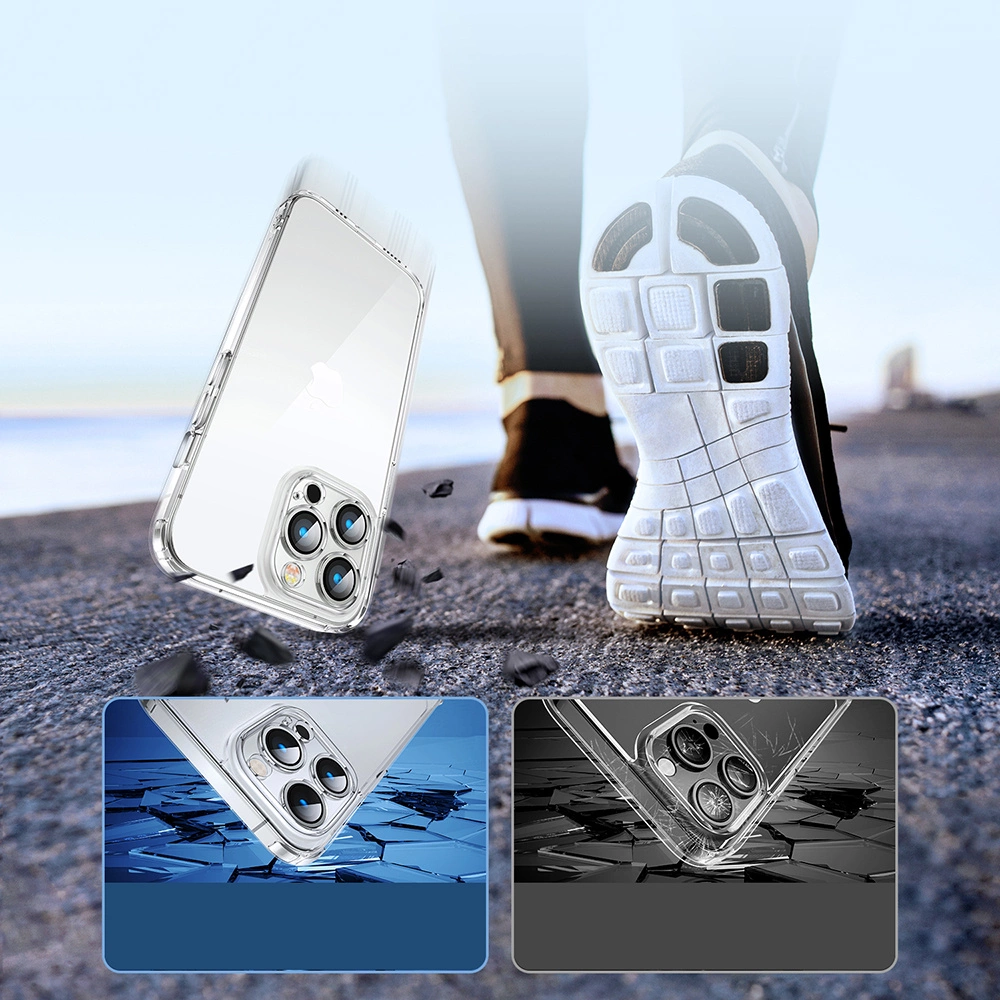 Váš telefon je spolehlivě chráněn v případě nárazu nebo pádu. Dokonalé tlumení nárazů zajišťuje kombinace dvou materiálů: pružného silikonu a pevného materiálu PC. Telefon je chráněn nejen proti rozbití, ale také proti poškrábání – toho je dosaženo zesílenými hranami kolem obrazovky, které ji oddělují od drsných povrchů.
