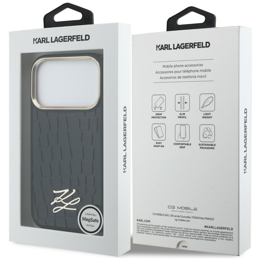 Karl Lagerfeld Croco KL Script Logo MagSafe Black Kryt iPhone 17 Pro Max