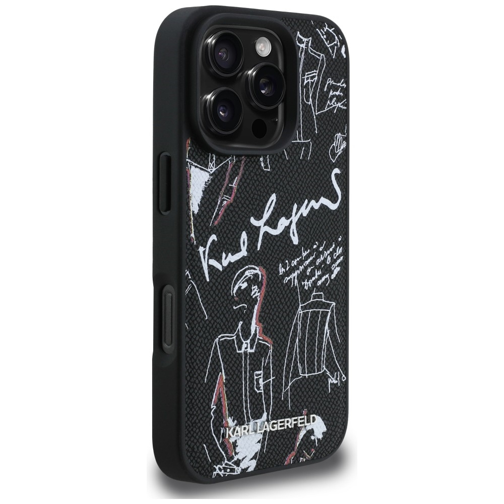 Karl Lagerfeld Grained Pattern & Logo MagSafe Black Kryt iPhone 16 Pro