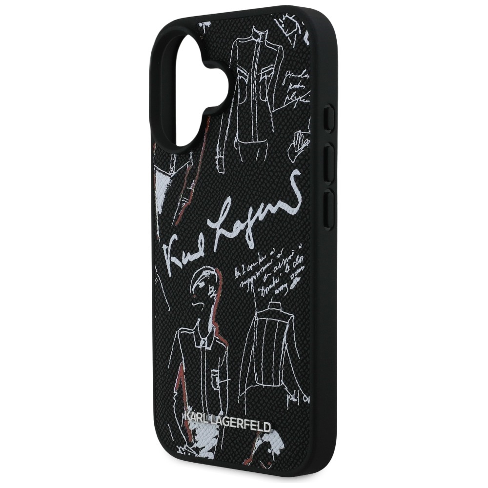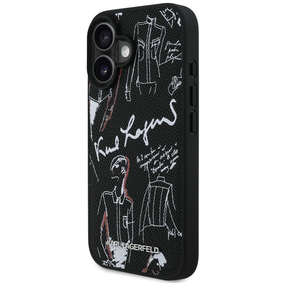 Karl Lagerfeld Grained Pattern & Logo MagSafe Black Kryt iPhone 16