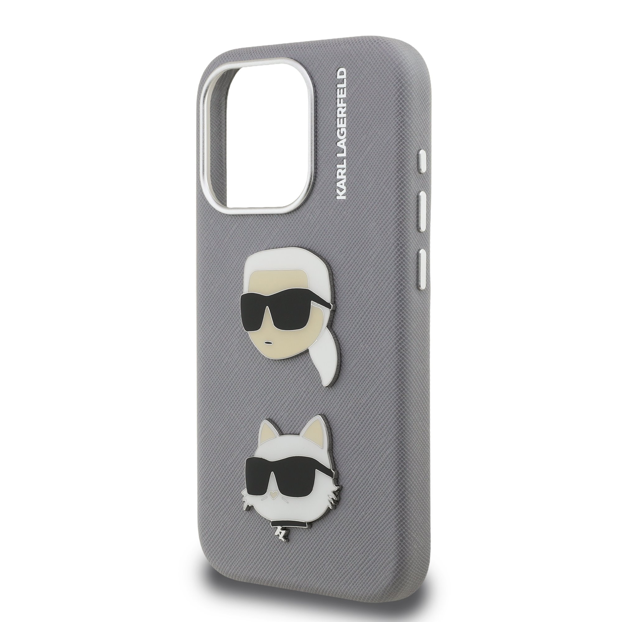 Karl Lagerfeld Grained PU K&CH Heads Grey Kryt iPhone 15 Pro Max