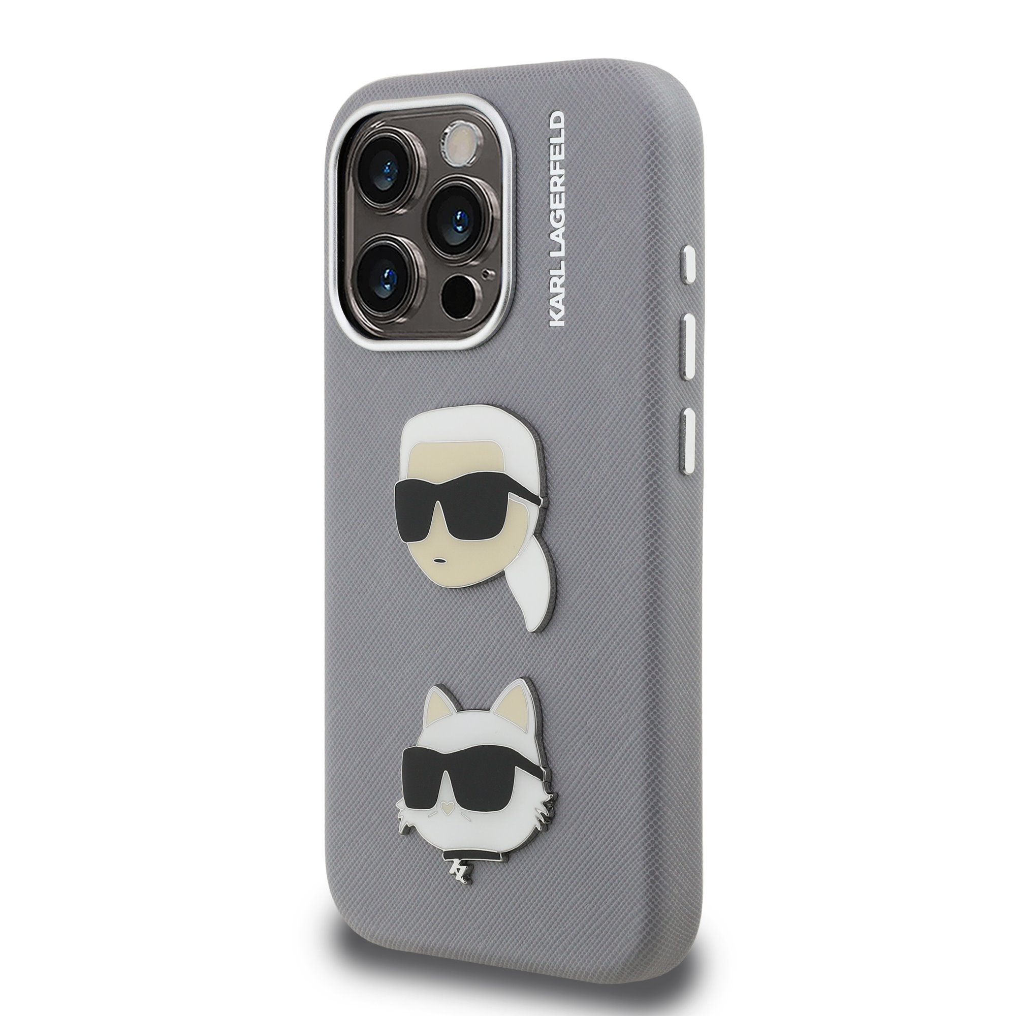 Karl Lagerfeld Grained PU K&CH Heads Grey Kryt iPhone 15 Pro