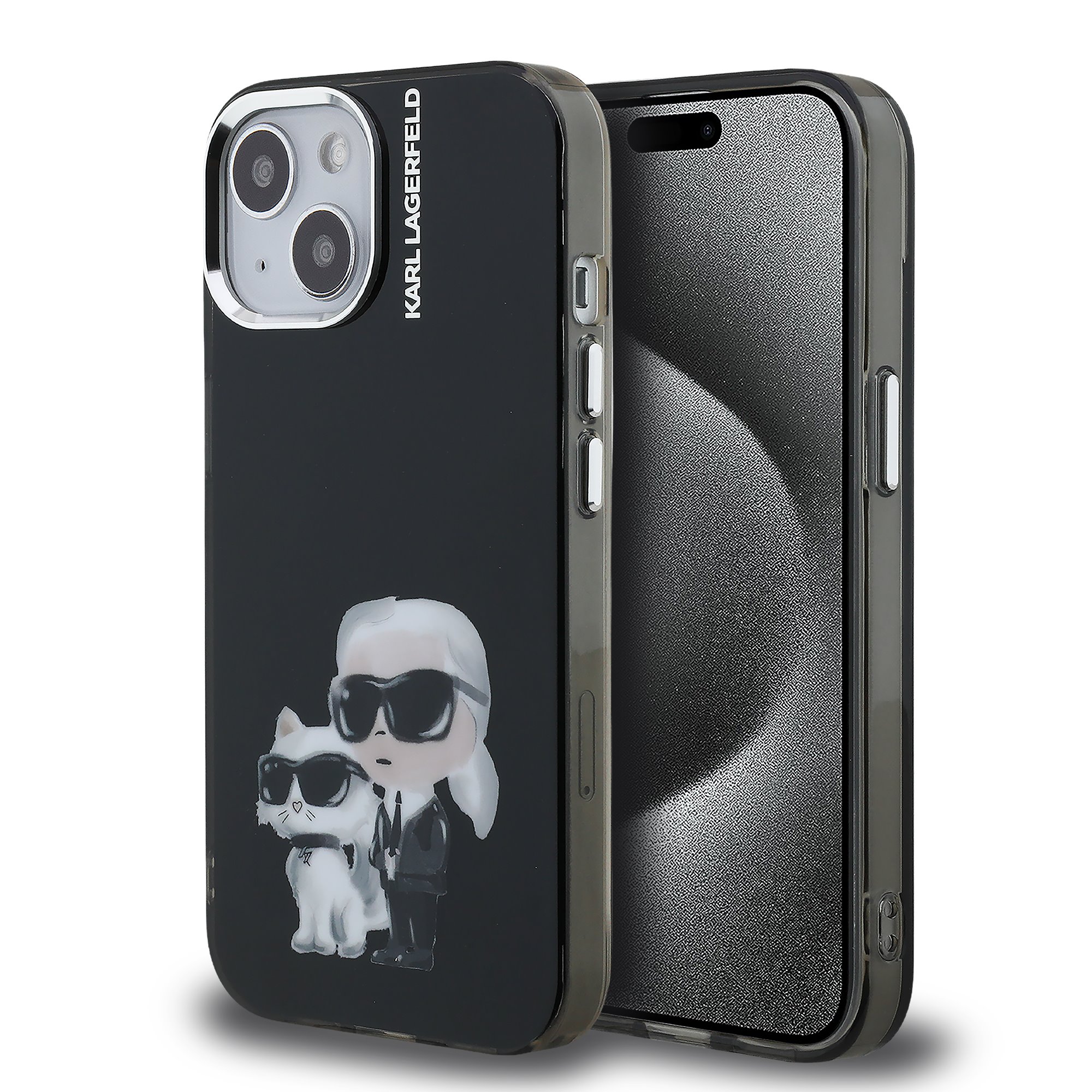 Karl Lagerfeld IML Aquarelle Karl and Choupette Black Kryt iPhone 15