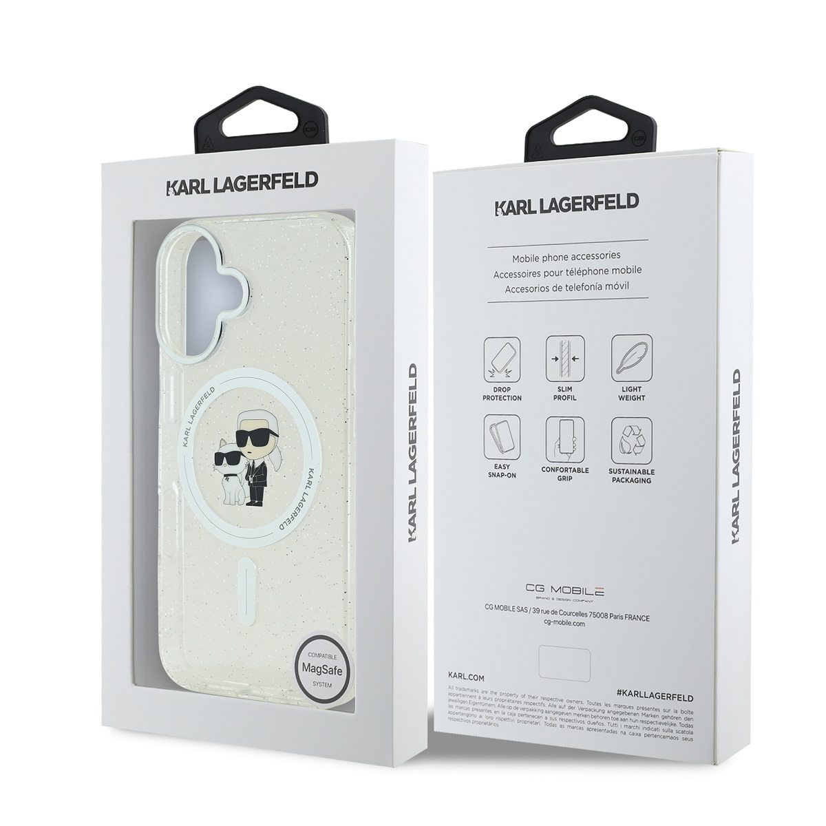 Karl Lagerfeld IML Glitter Karl and Choupette MagSafe zadní kryt je dokonalý doplněk pro váš telefon i váš outfit, který kombinuje funkčnost a styl v jednom.