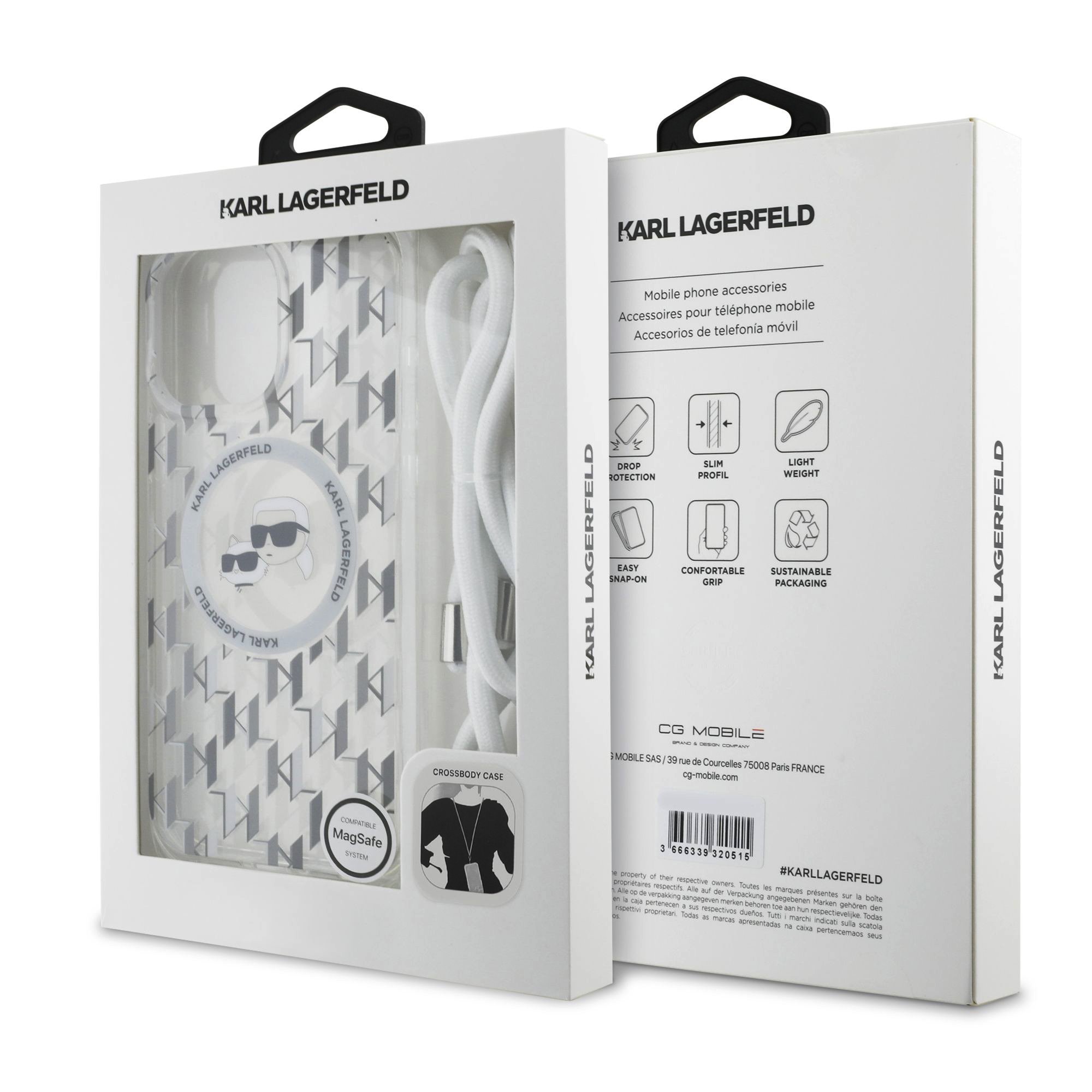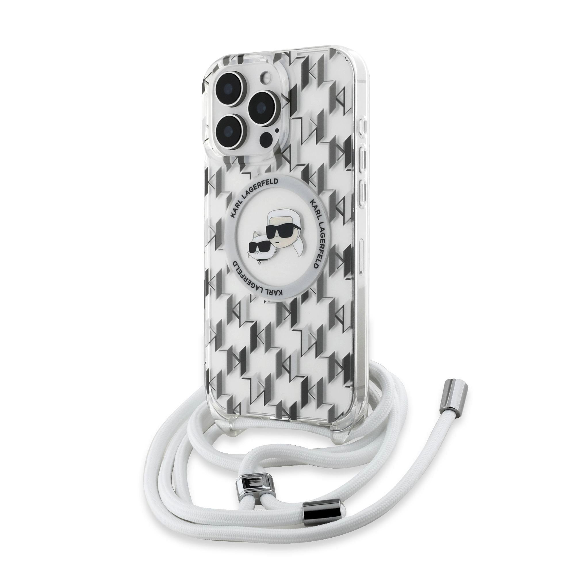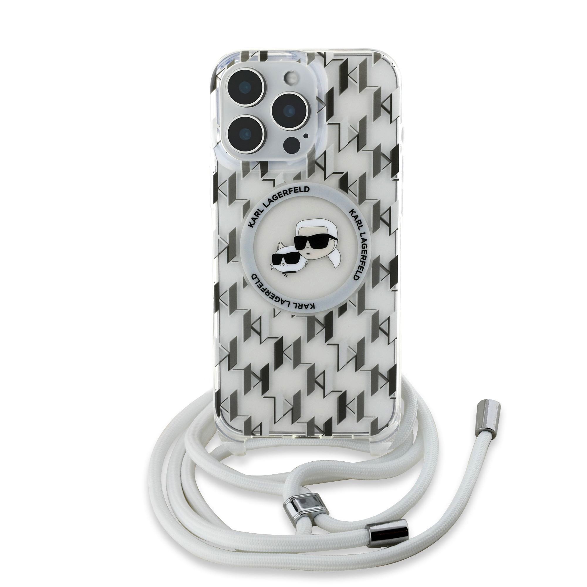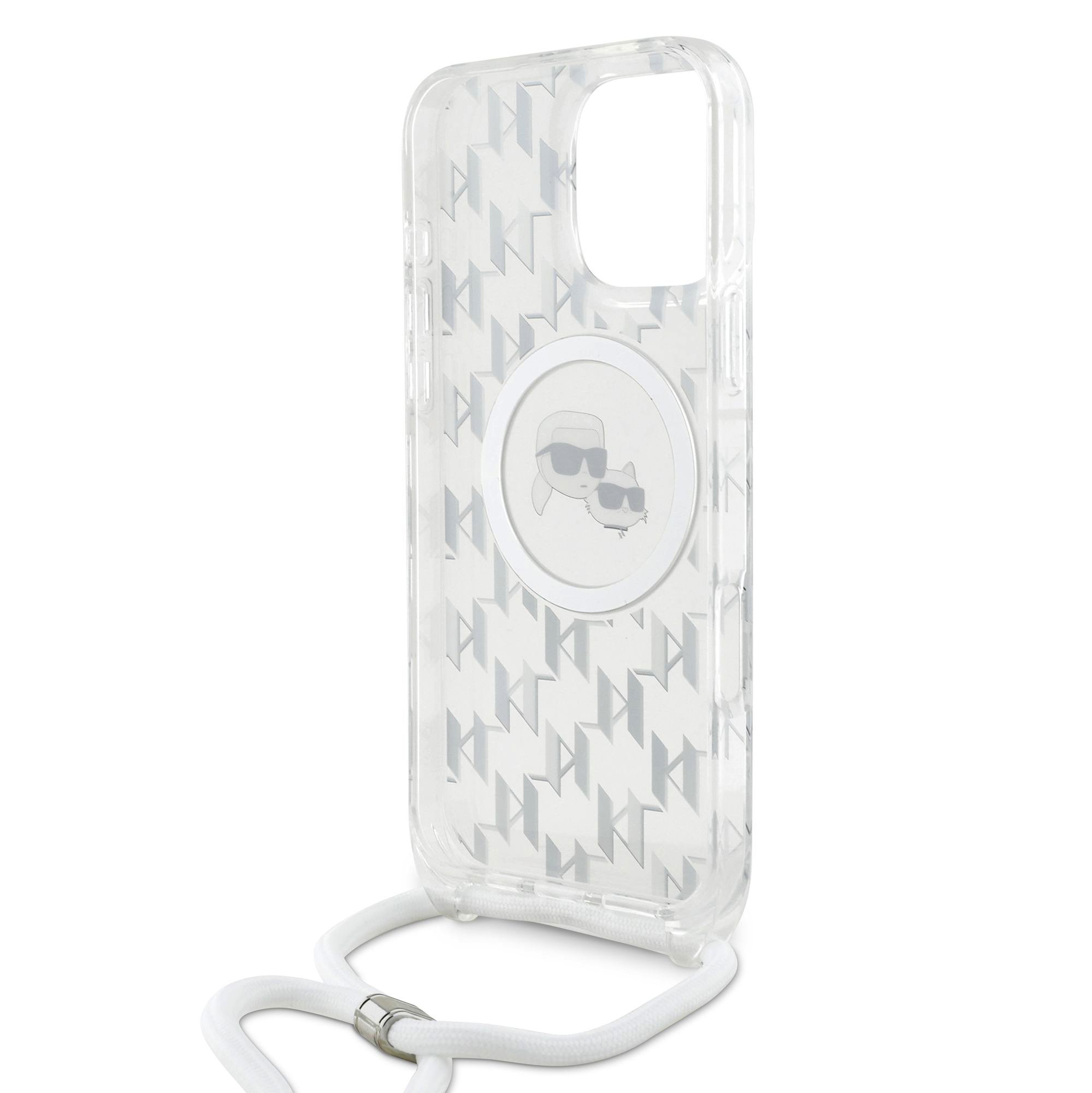 S prémiovým krytem Karl Lagerfeld IML Monogram Crossbody K&CH Heads MagSafe získáte nejen elegantní ochranu pro váš telefon, ale také praktický crossbody popruh.