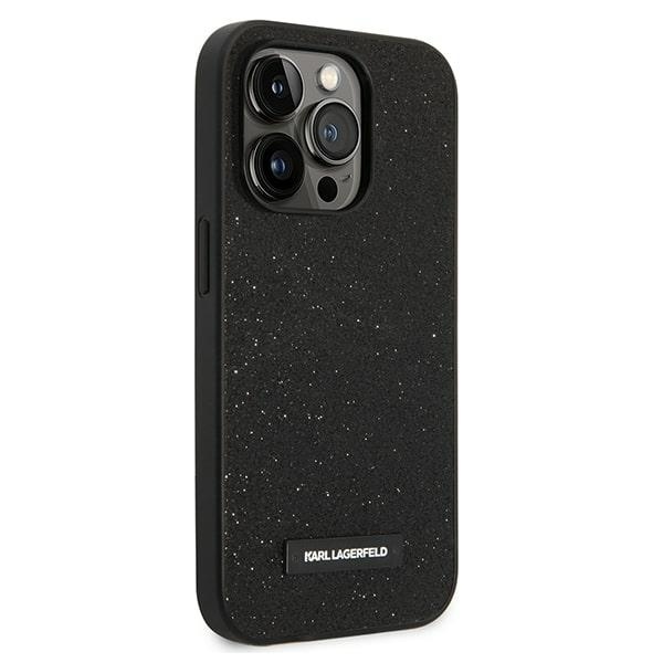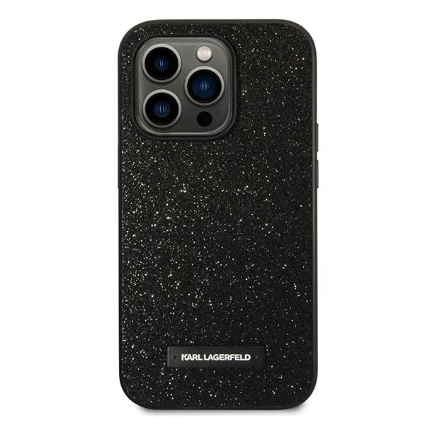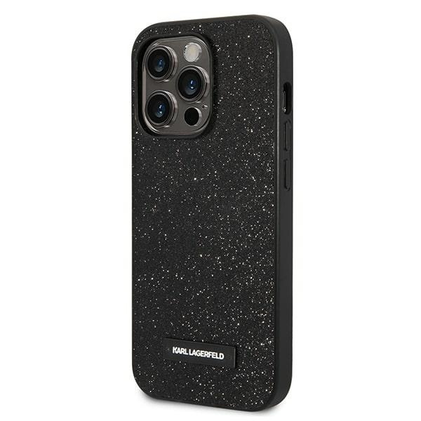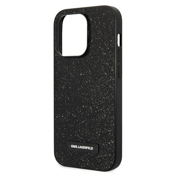 Karl Lagerfeld KLHCP14XG2ELK Hardcase Black Glitter Plaque Logo Kryt iPhone 14 Pro Max kombinuje čistý design a jistotu ochrany pro iPhone 14 Pro Max. Přesné tvarování zachovává tenký profil telefonu a chrání jej před pády a poškrábáním.