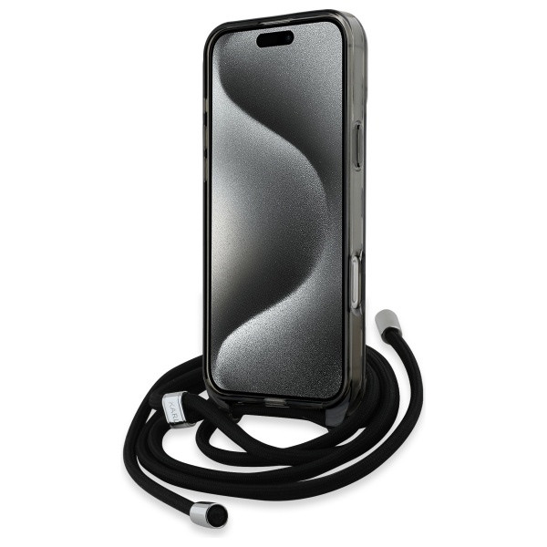 Karl Lagerfeld KLHMP16LHCKCKLCK Black Hardcase IML Crossbody Monogram Karl & Chou Kryt iPhone 16 Pro