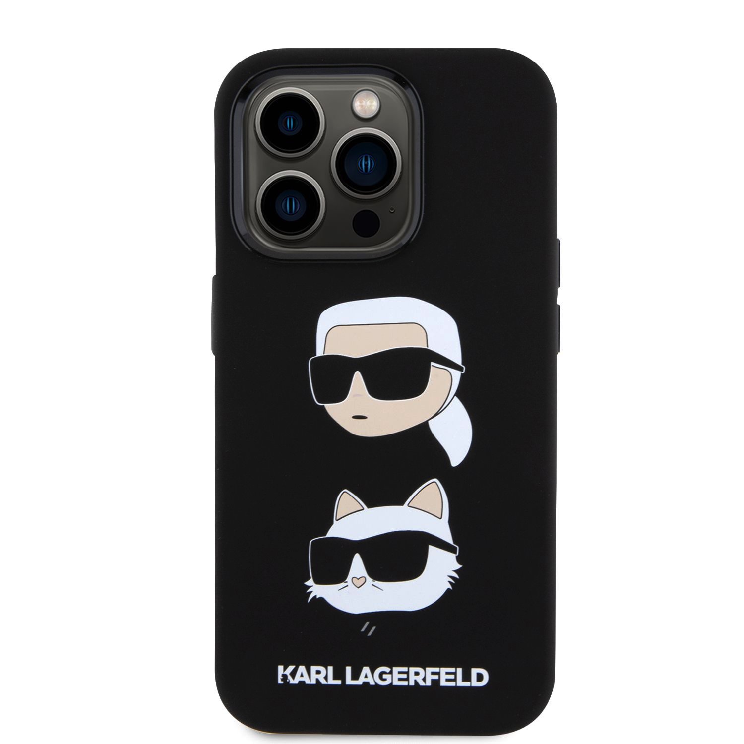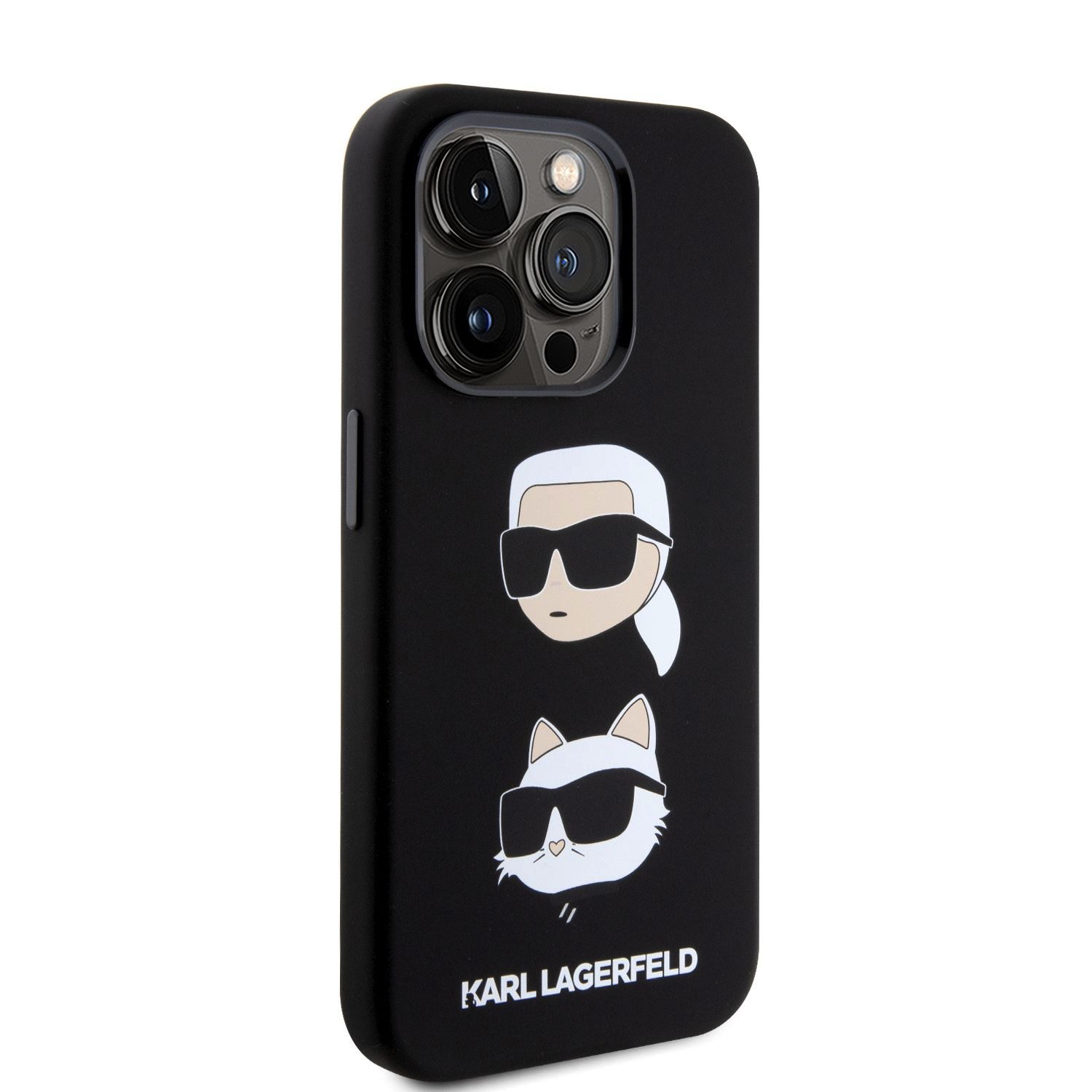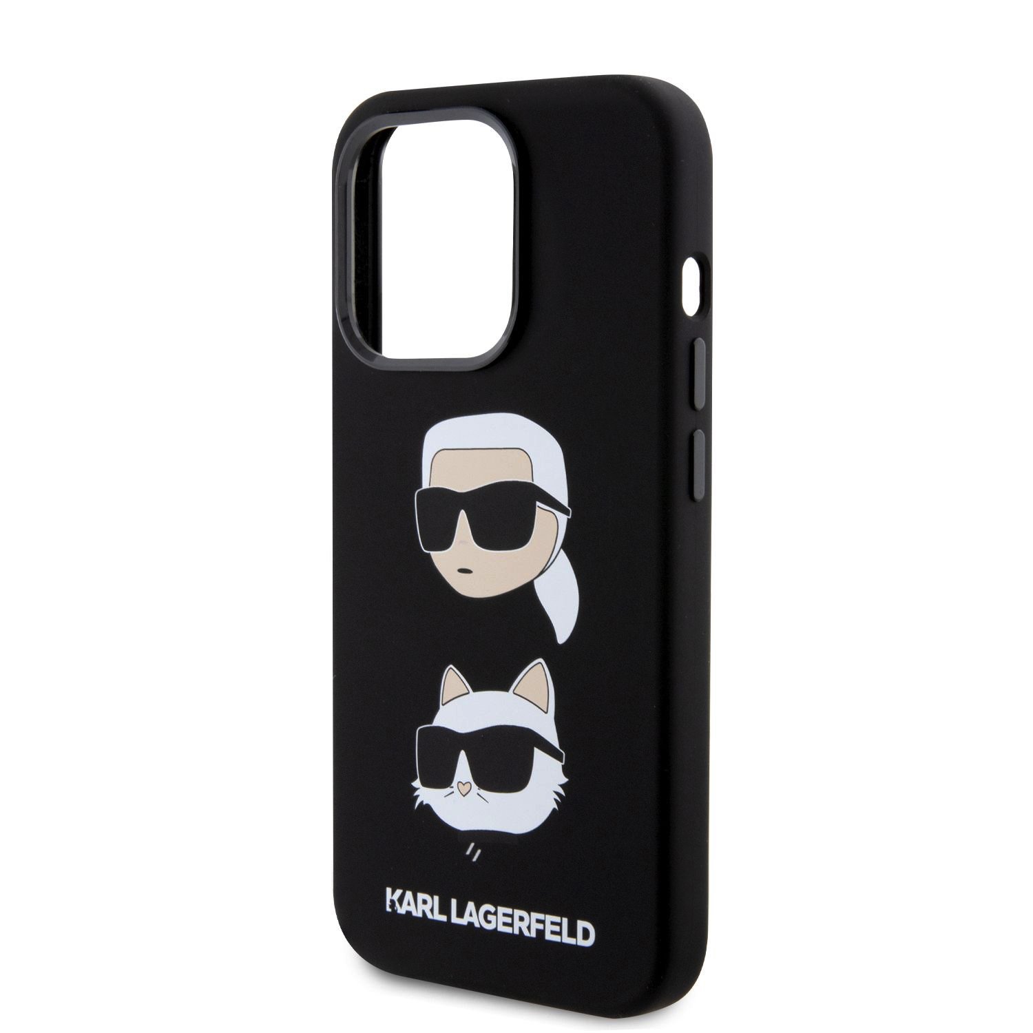Karl Lagerfeld Liquid Silicone Karl and Choupette Heads Black Kryt iPhone 15 Pro