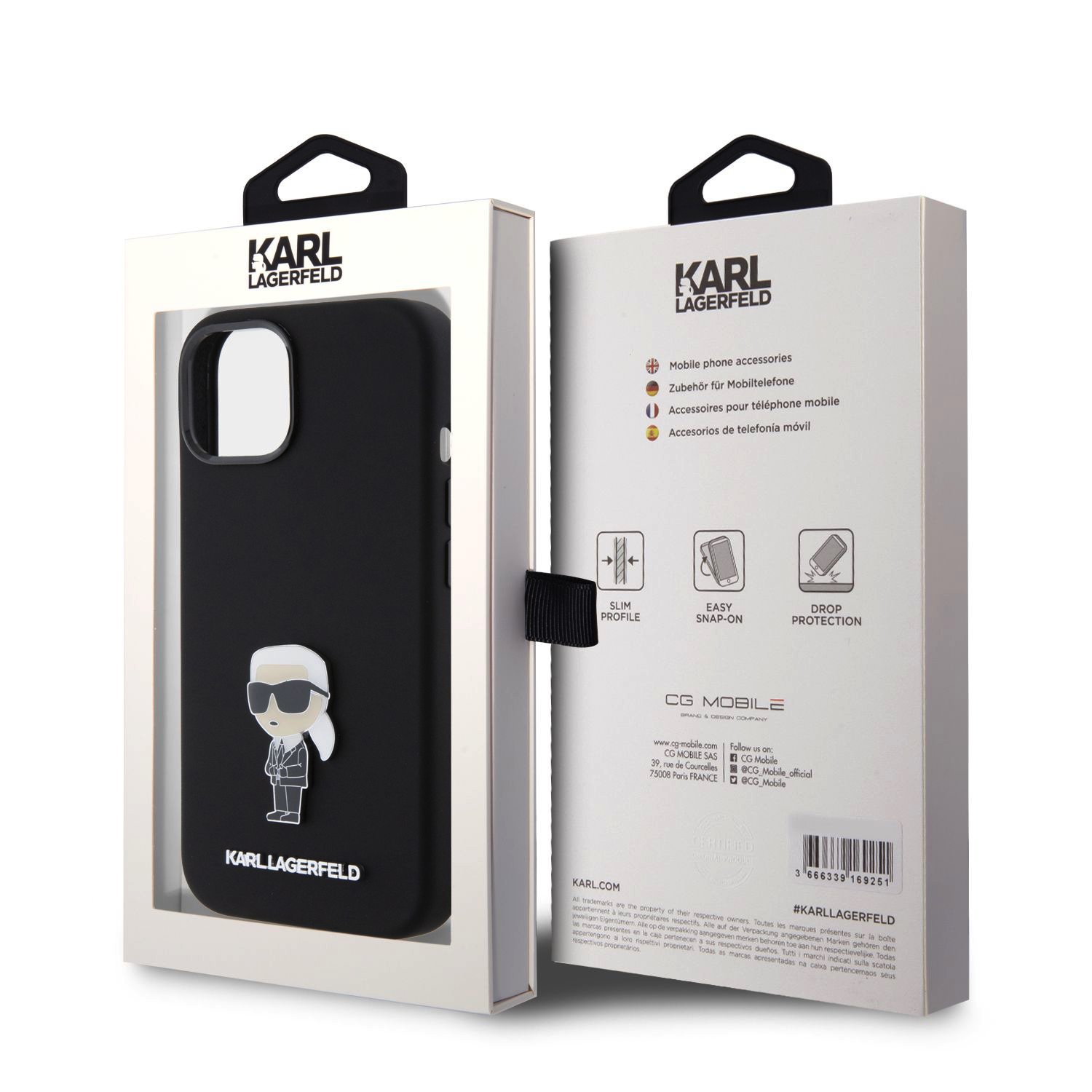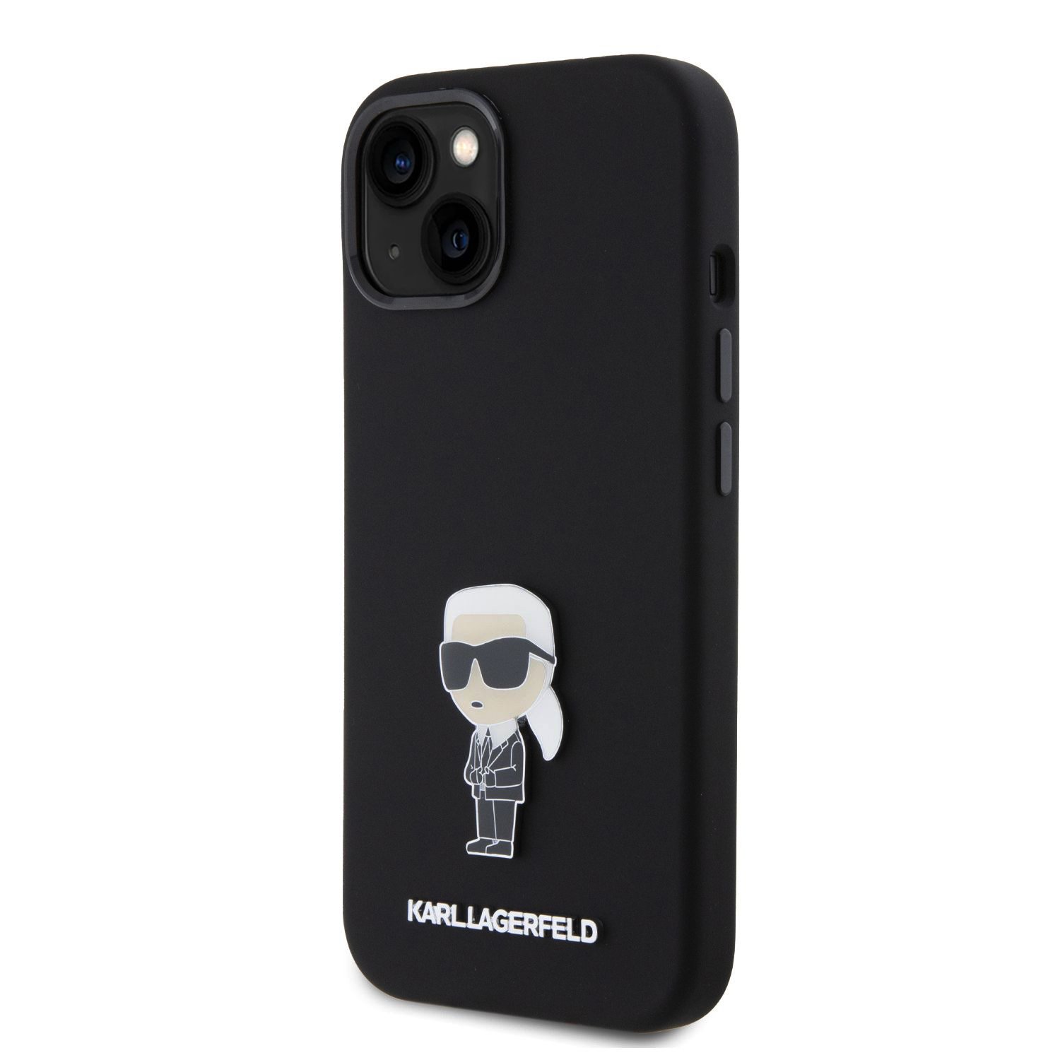 Karl Lagerfeld Liquid Silicone Metal Ikonik Black Kryt iPhone 15
