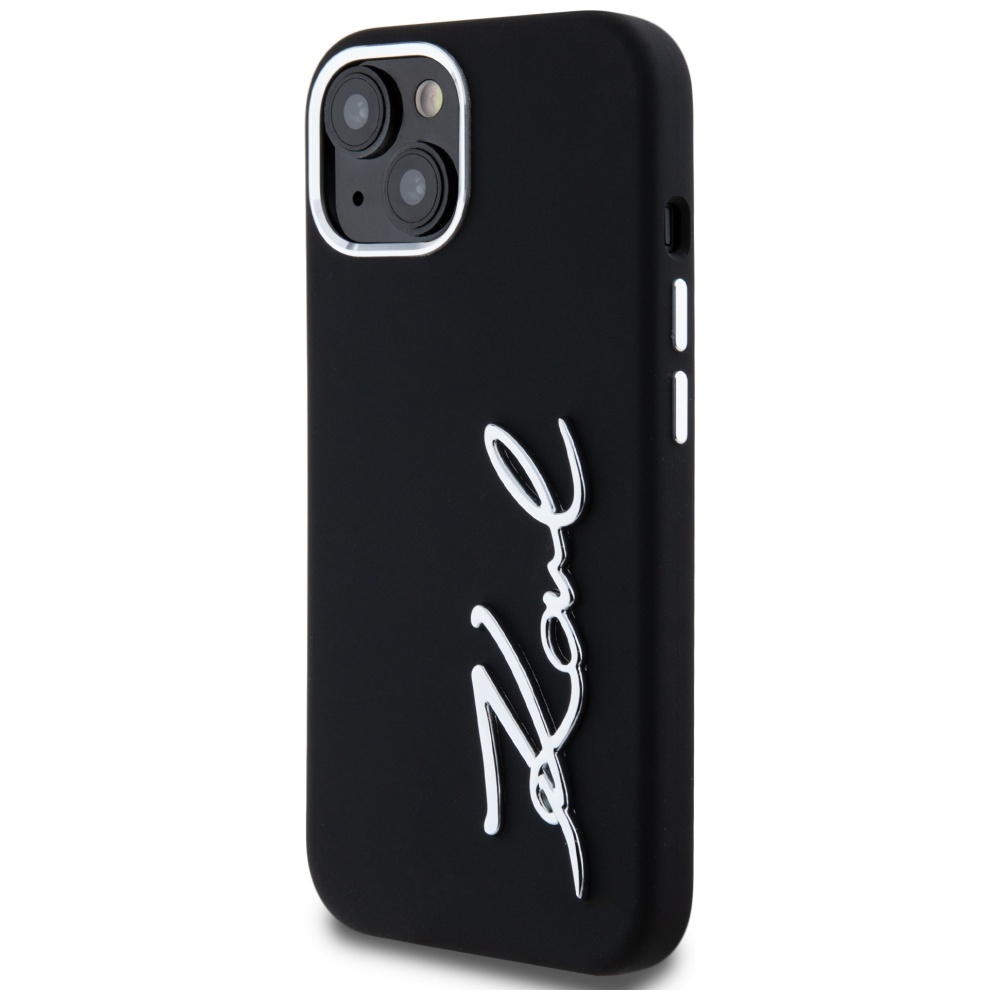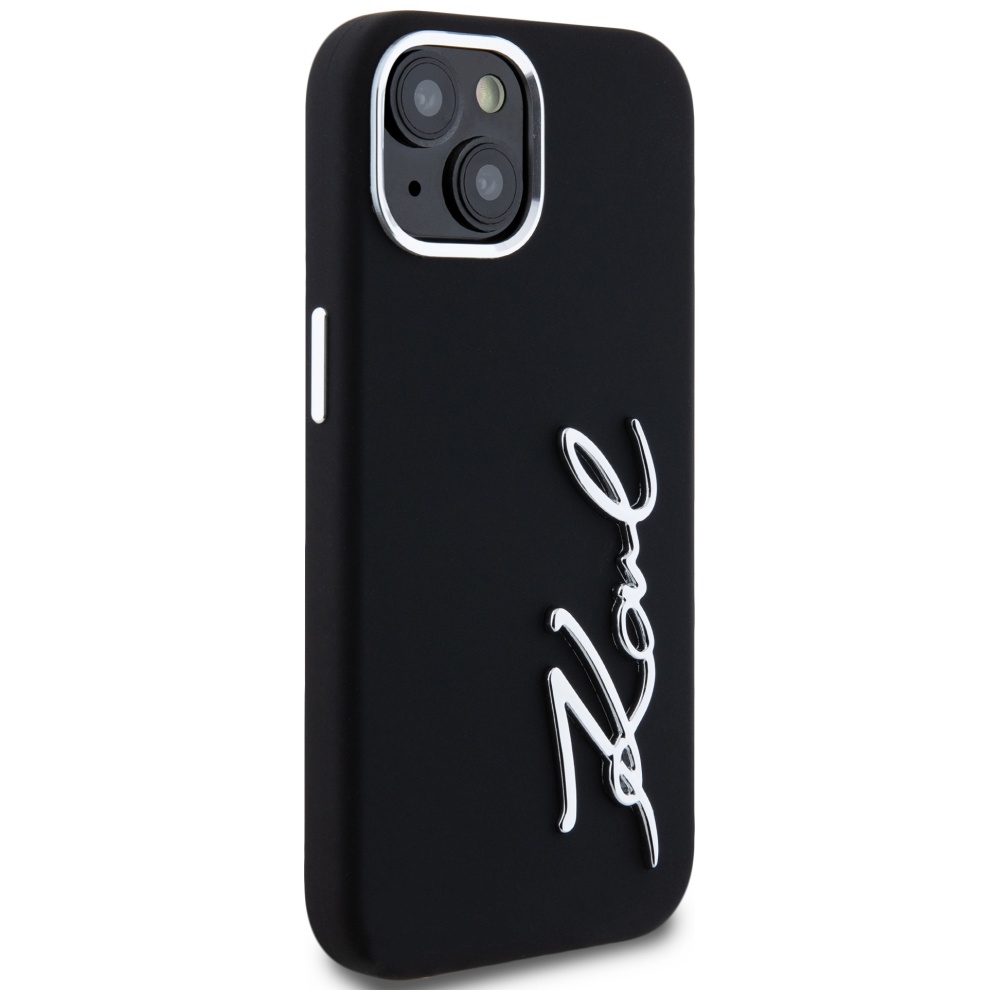 Karl Lagerfeld Silicone Metal Script Logo Black Kryt iPhone 15
