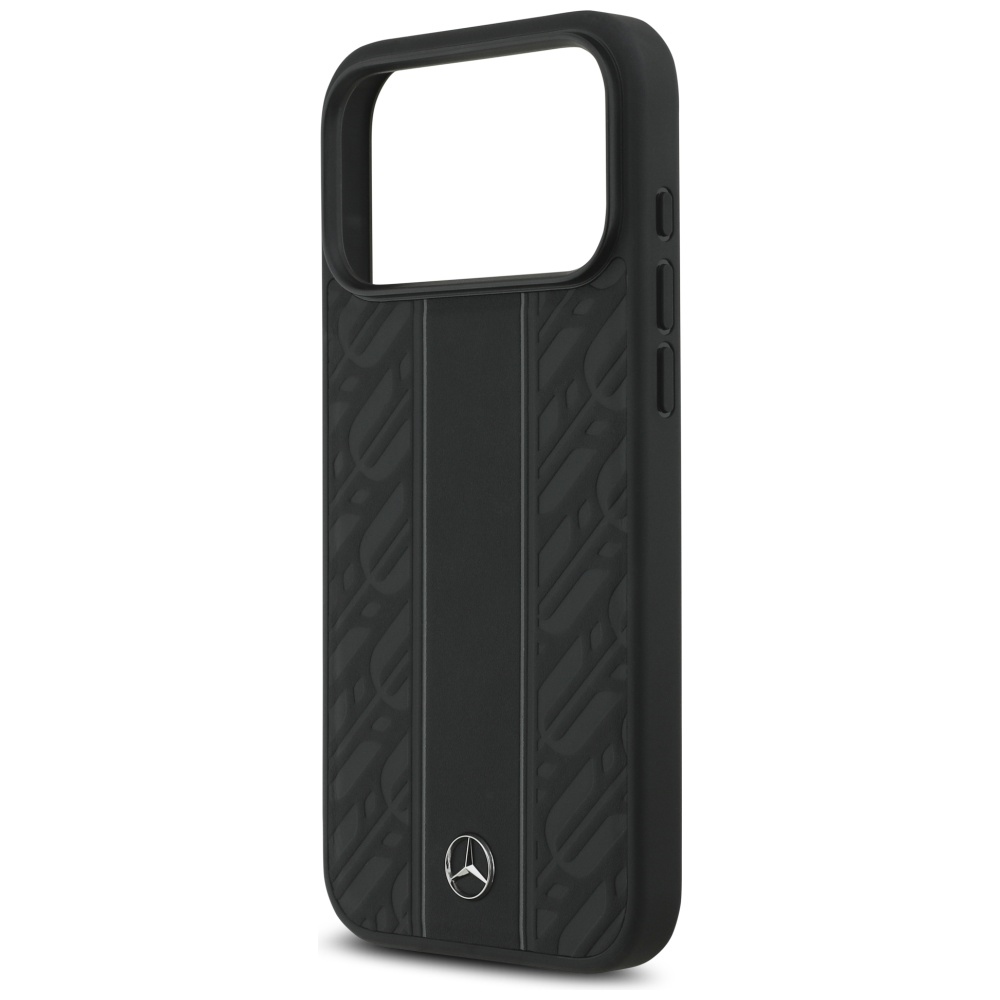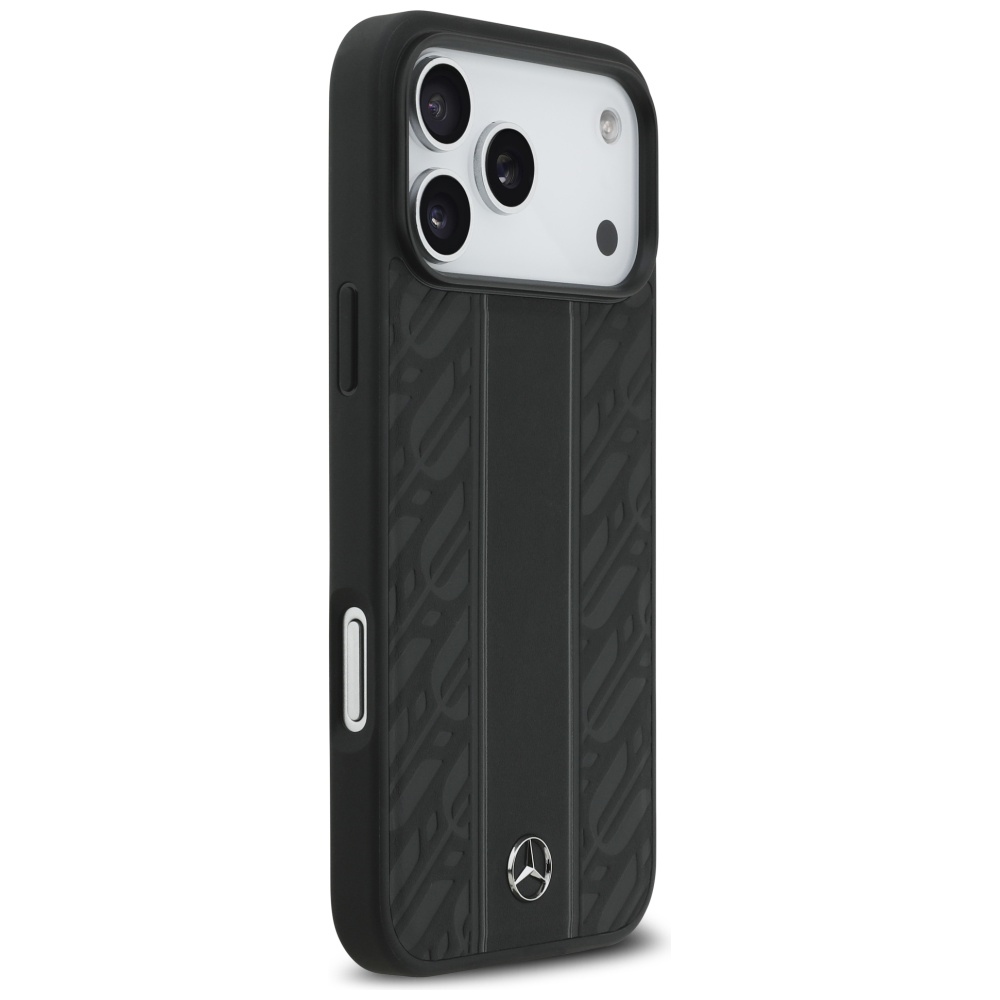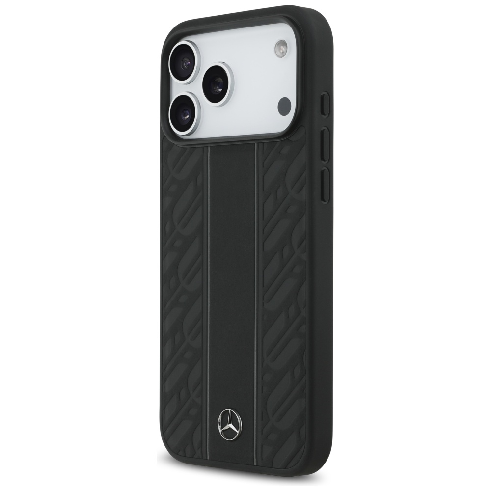 Mercedes Leather Laurel Leaves Stripes MagSafe Black Kryt iPhone 17 Pro Max