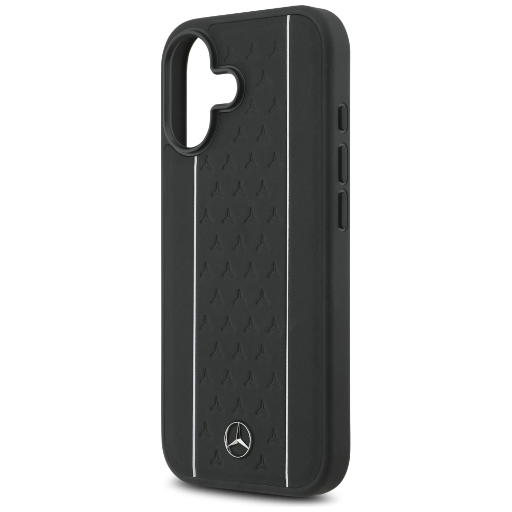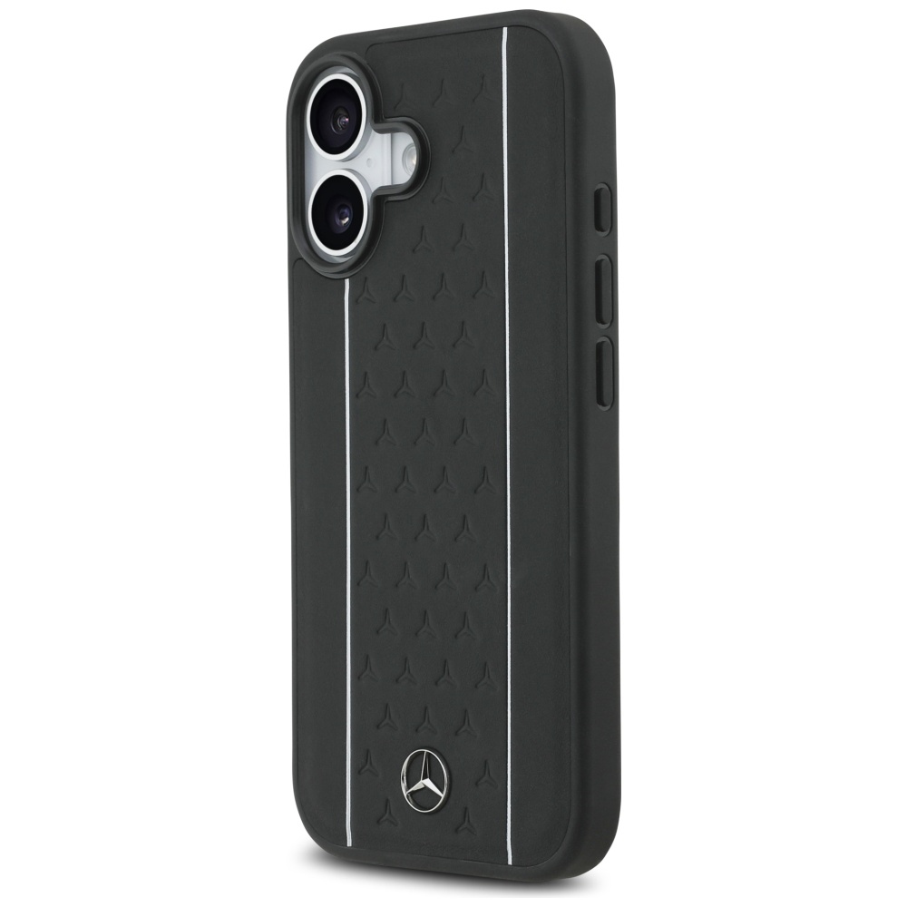 Mercedes Leather Star Pattern Stripes MagSafe Black Kryt iPhone 17