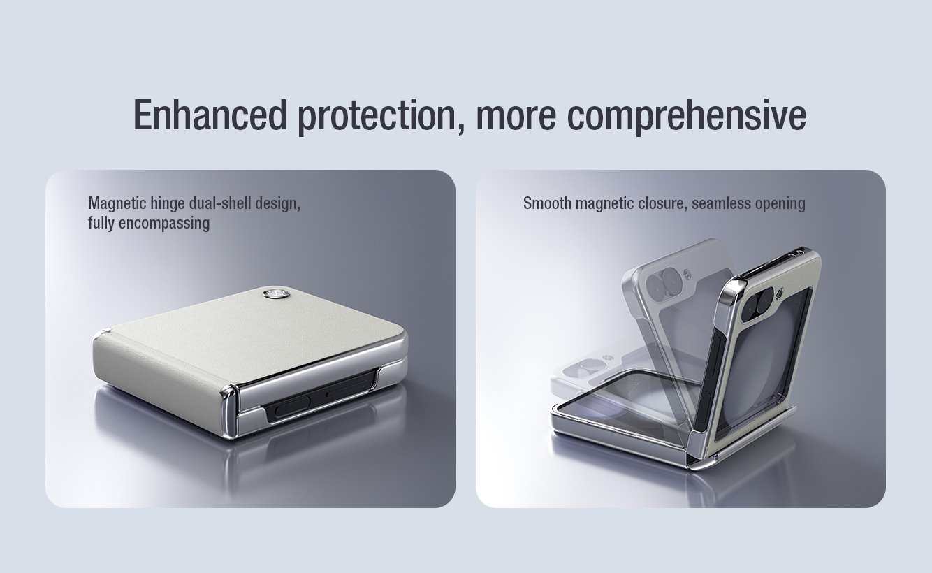 Nillkin CamShield Flip Black Kryt Samsung Galaxy Z Flip 6 je tvrzené sklo pro Samsung Galaxy Z Flip 6, které chrání displej každý den. Tvrdost 9H odolá škrábancům a zajišťuje čistý obraz bez zkreslení.