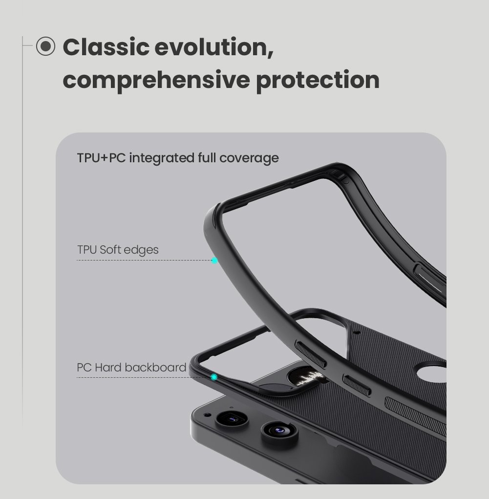 Skládá se z tvrdého a odolného plastu na zadní straně a TPU měkkého plastu na bocích.