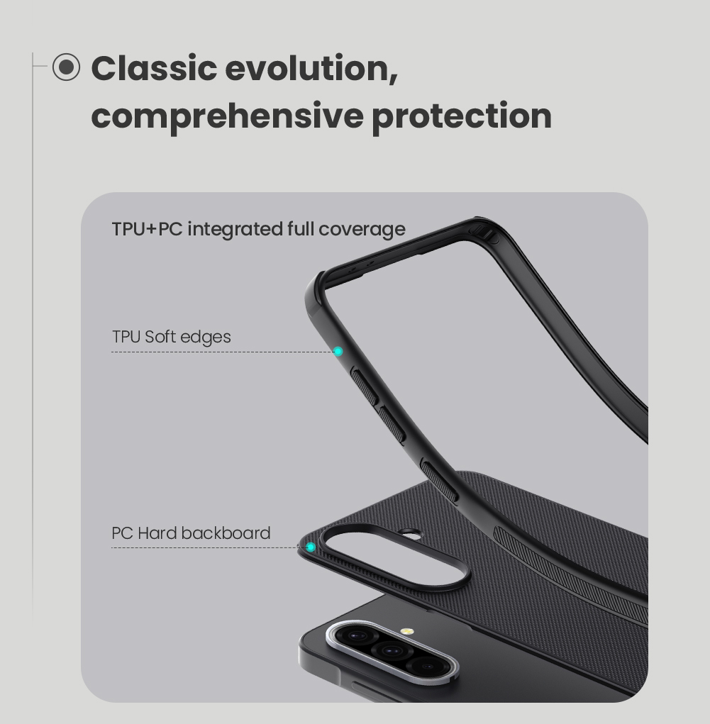 Skládá se z tvrdého a odolného plastu na zadní straně a TPU měkkého plastu na bocích.
