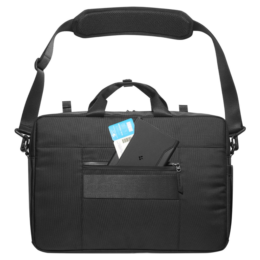 Taška Spigen KD300 je kombinací moderního designu a maximální funkčnosti. Vyrobená z vysoce kvalitního materiálu pokrytého PU povlakem, zajišťuje trvanlivost, odolnost proti opotřebení a lehké povětrnostní podmínky. Díky prostorné konstrukci se dvěma zipy nabízí několik přihrádek, včetně polstrované kapsy na laptop do 16 palců a vyhrazeného místa na AirTag, což usnadňuje organizaci a zvyšuje bezpečnost obsahu.