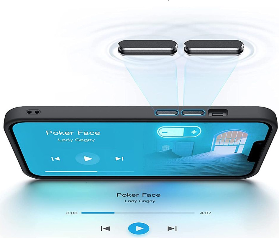 Mírně zvýšená forma pouzdra kolem fotoaparátu a obrazovky chrání před poškozením, drží telefon těsně nad rovným povrchem.