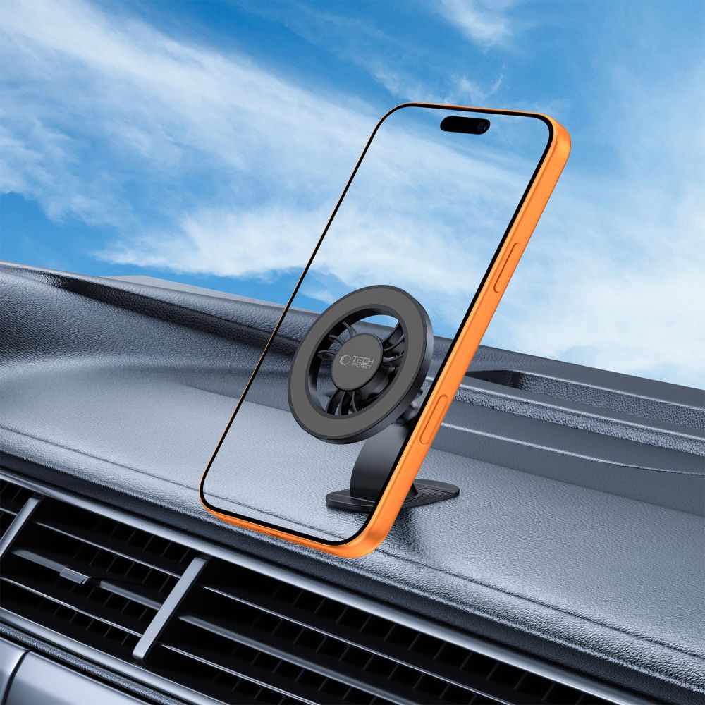 Tech-Protect N56 Ideální malý držák do auta s technologií MagSafe, který lze namontovat na palubní desku nebo na mřížku ventilace. V balení jsou dva montážní adaptéry – stačí si vybrat ten správný pro vaše auto. Montáž na palubní desku probíhá pomocí 3M pásky, která pevně drží a nezanechává stopy po odlepení. Dodatečný adaptér umožňuje upevnění držáku na libovolnou mřížku ventilace.