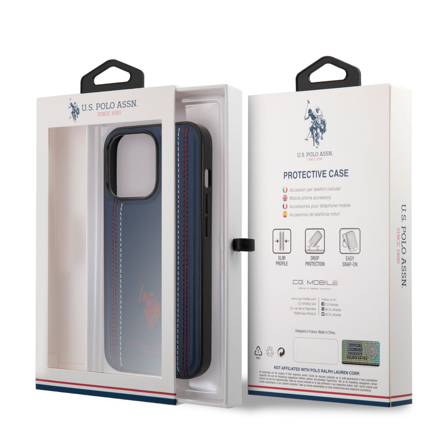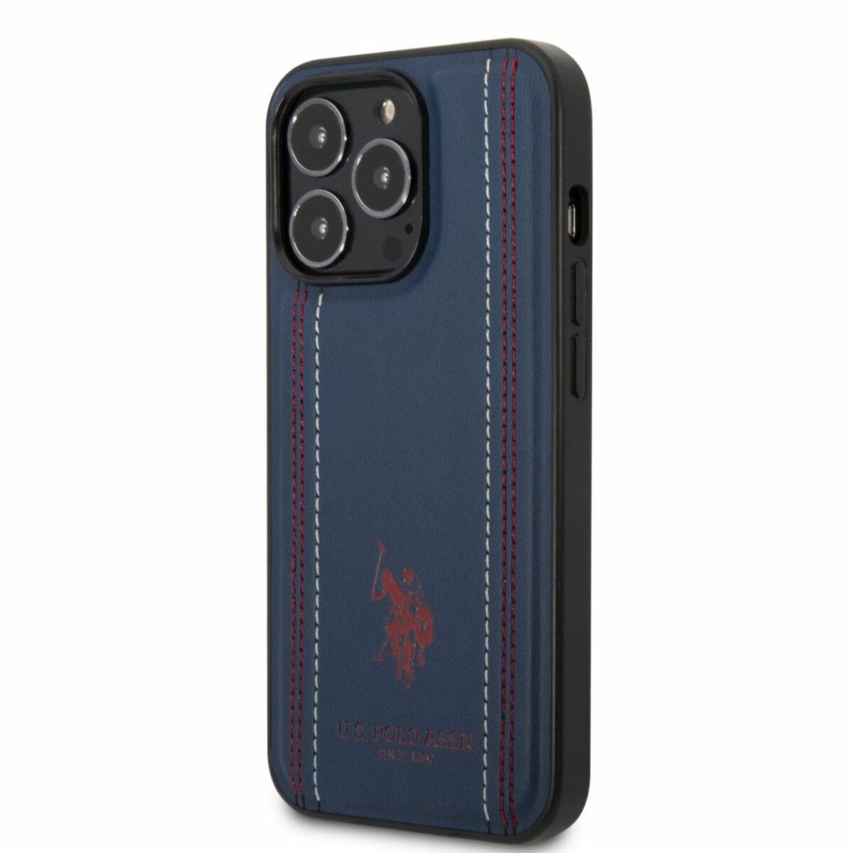 U.S. Polo PU Leather Stitched Lines Kryt iPhone 14 Pro Navy