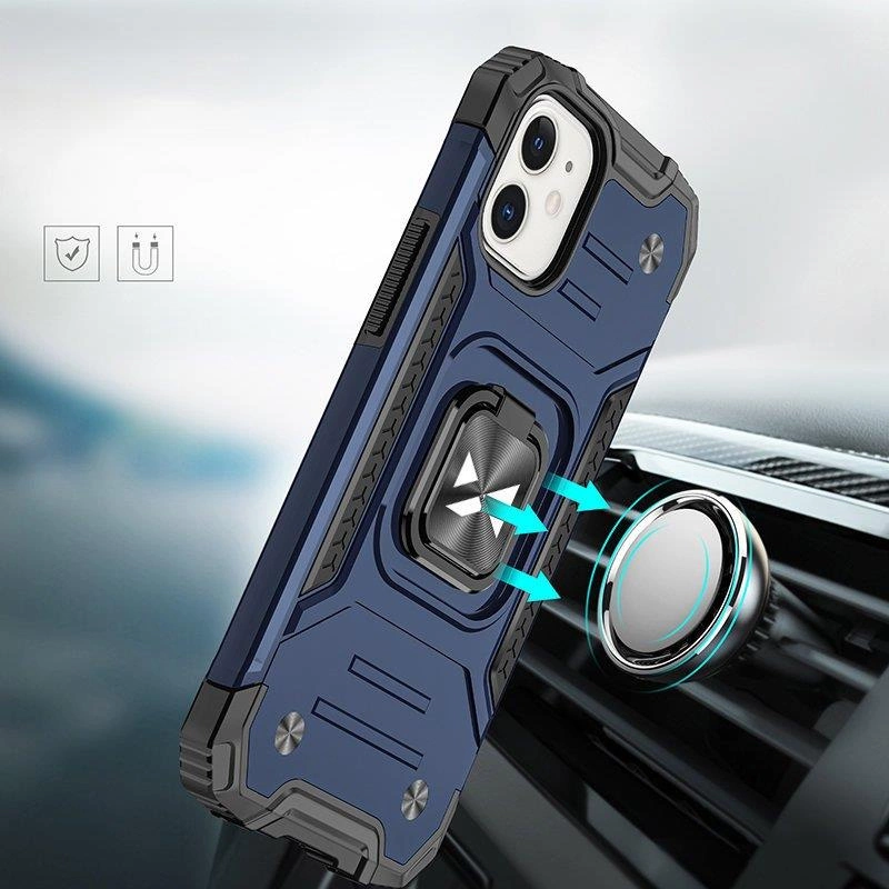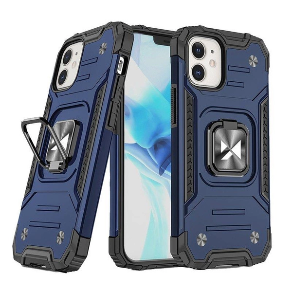 Wozinsky Ring Armor obal na iPhone 14 s funkcí stojanu a držátkem na prst v modré barvě